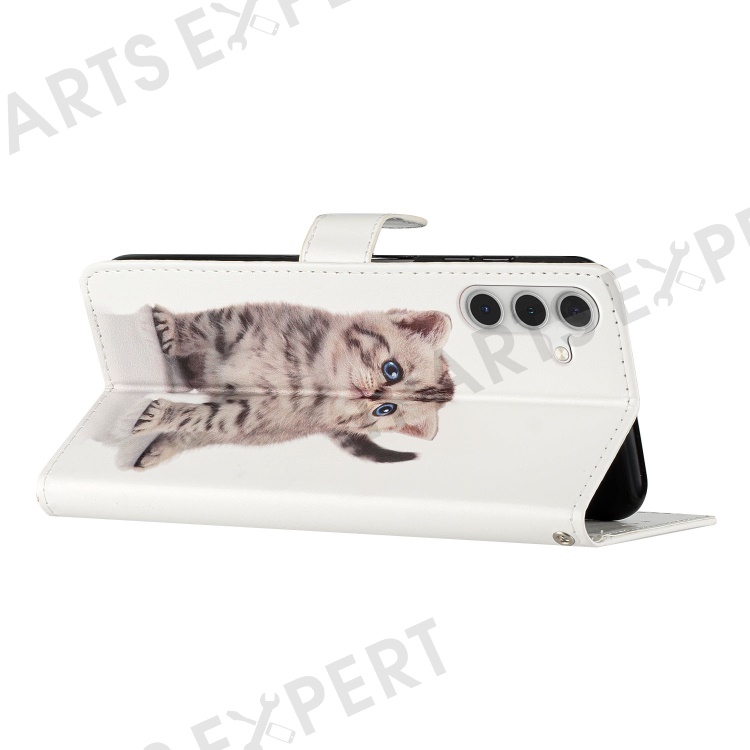 For Samsung Galaxy A25 5G (Global) (161.0 x 76.5 x 8.3mm) PU Leather Pattern Printing Phone Case Stand Flip Wallet Cover with Strap - Cute Cat