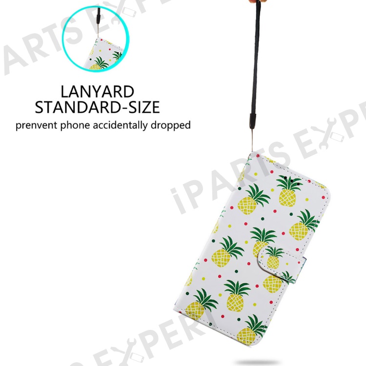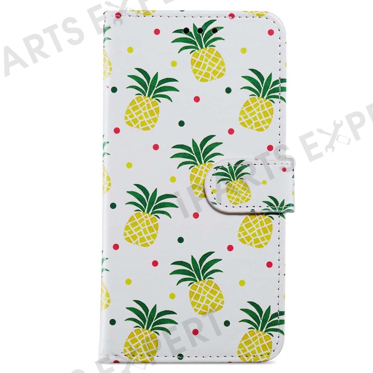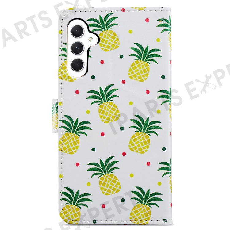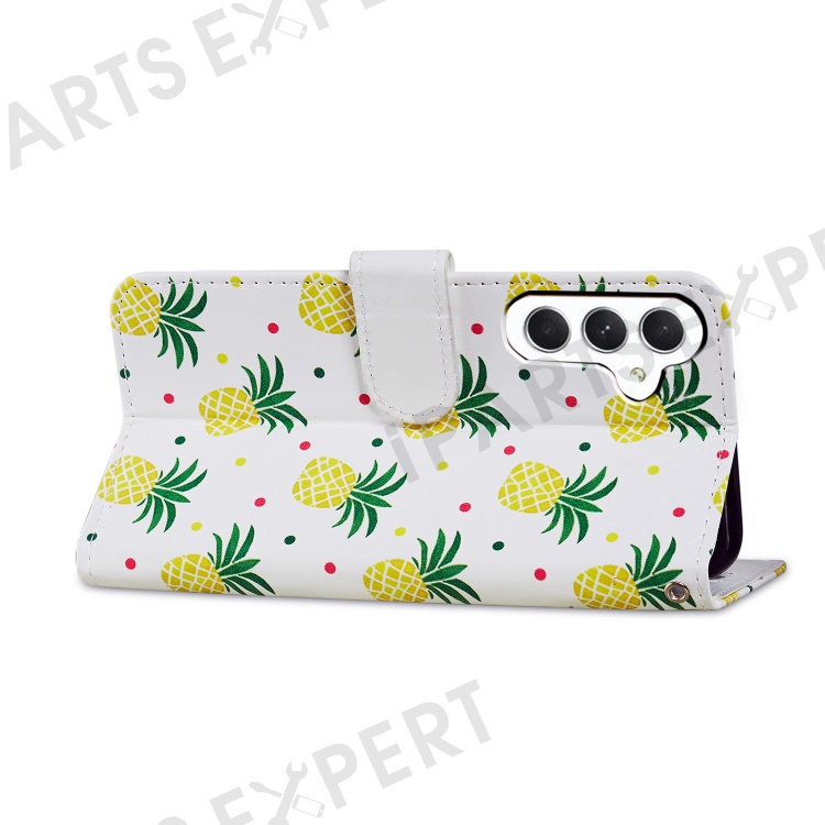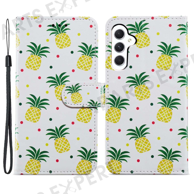 For Samsung Galaxy A25 5G (Global) (161.0 x 76.5 x 8.3mm) PU Leather Pattern Printing Phone Case Stand Flip Wallet Cover with Strap - Pineapple