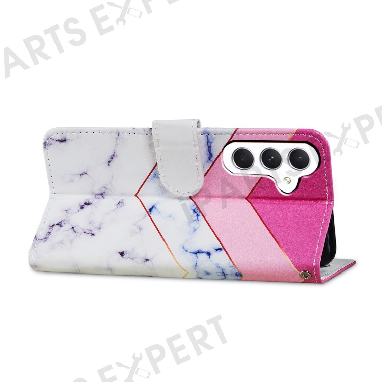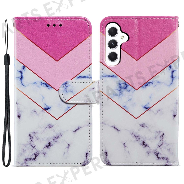 For Samsung Galaxy A25 5G (Global) (161.0 x 76.5 x 8.3mm) PU Leather Pattern Printing Phone Case Stand Flip Wallet Cover with Strap - Smoke Marble