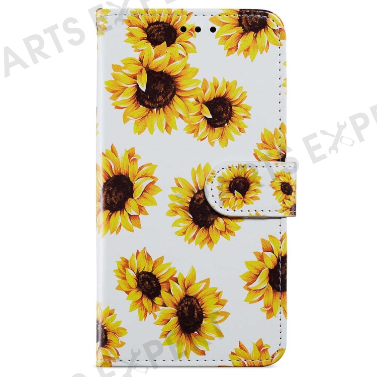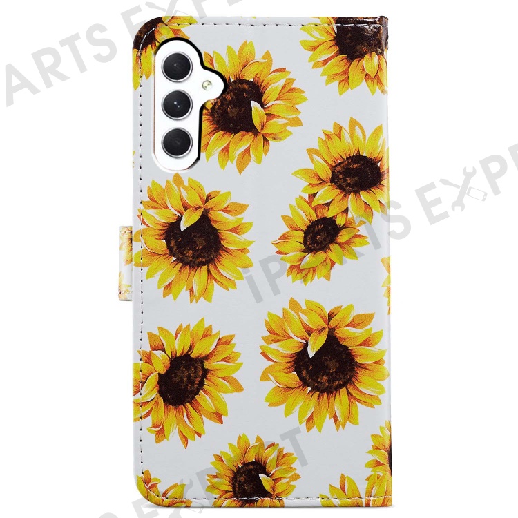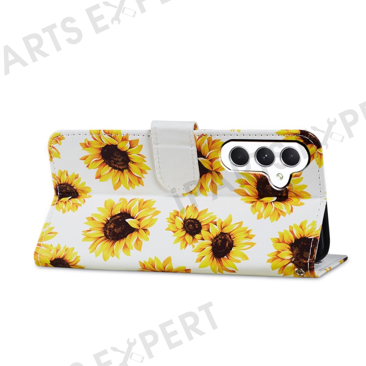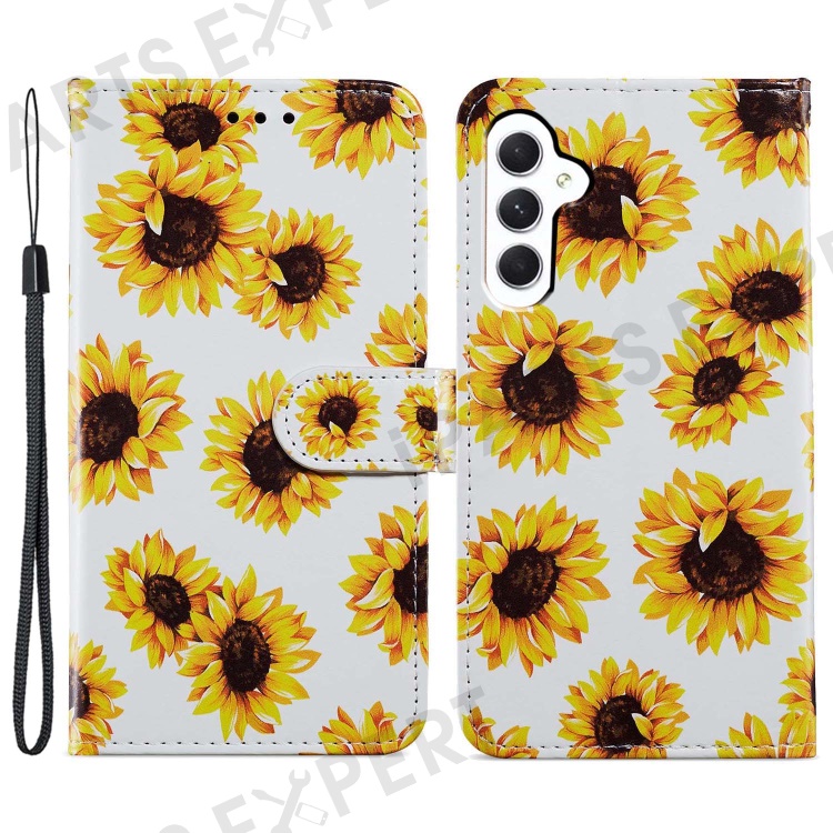 For Samsung Galaxy A25 5G (Global) (161.0 x 76.5 x 8.3mm) PU Leather Pattern Printing Phone Case Stand Flip Wallet Cover with Strap - Sunflower