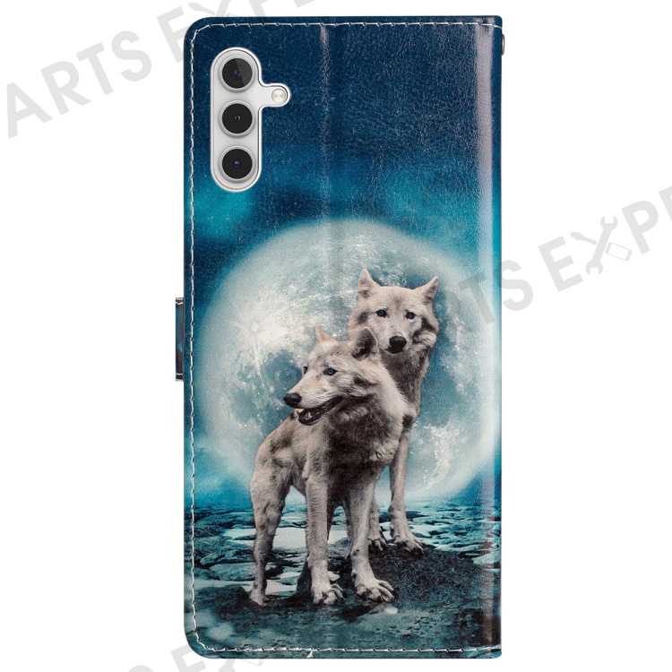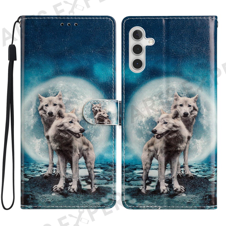 For Samsung Galaxy A25 5G (Global) (161.0 x 76.5 x 8.3mm) PU Leather Pattern Printing Phone Case Stand Flip Wallet Cover with Strap - Two Wolves