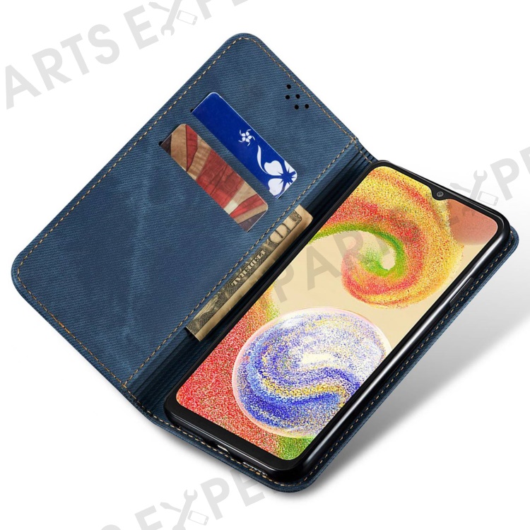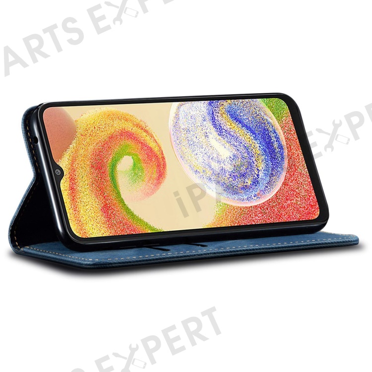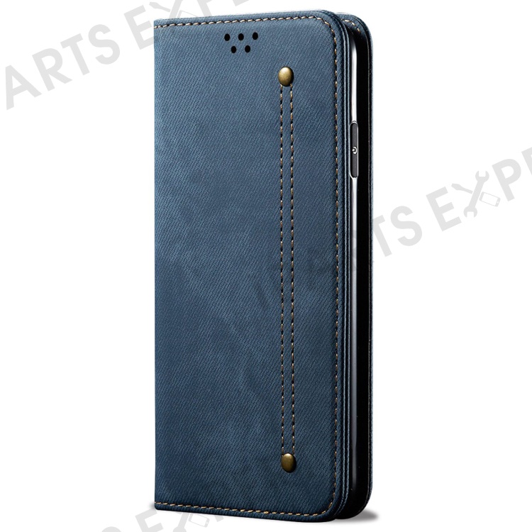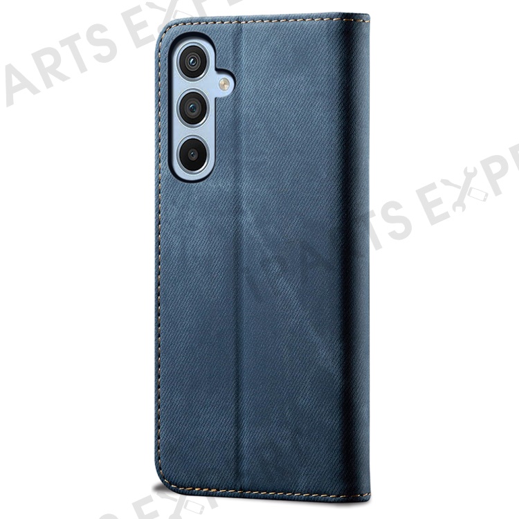 For Samsung Galaxy A25 5G (Global) (161.0 x 76.5 x 8.3mm) Wallet PU Leather Shockproof Cover Jeans Cloth Texture Phone Stand Case - Blue