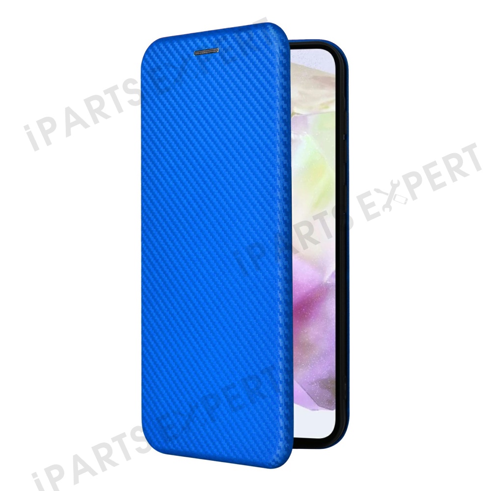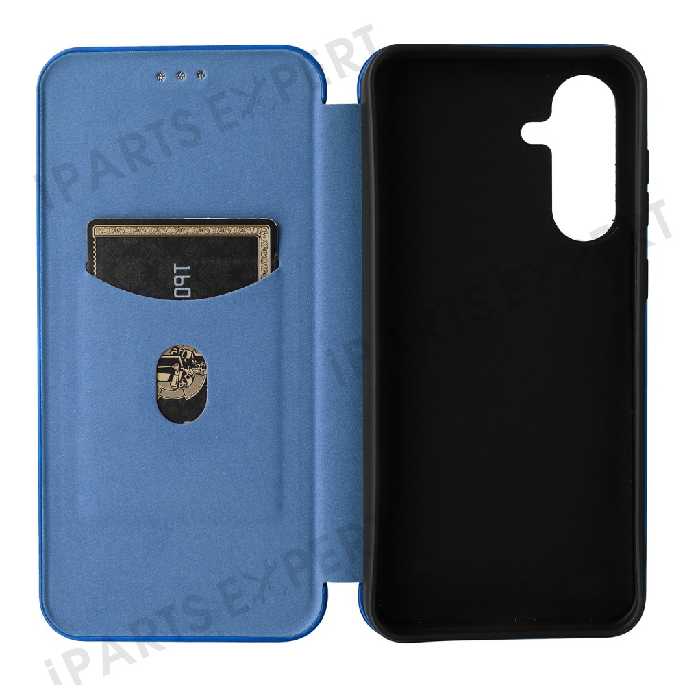 For Samsung Galaxy A26 5G Case Carbon Fiber Texture Drop-Proof PU Leather Phone Cover - Blue