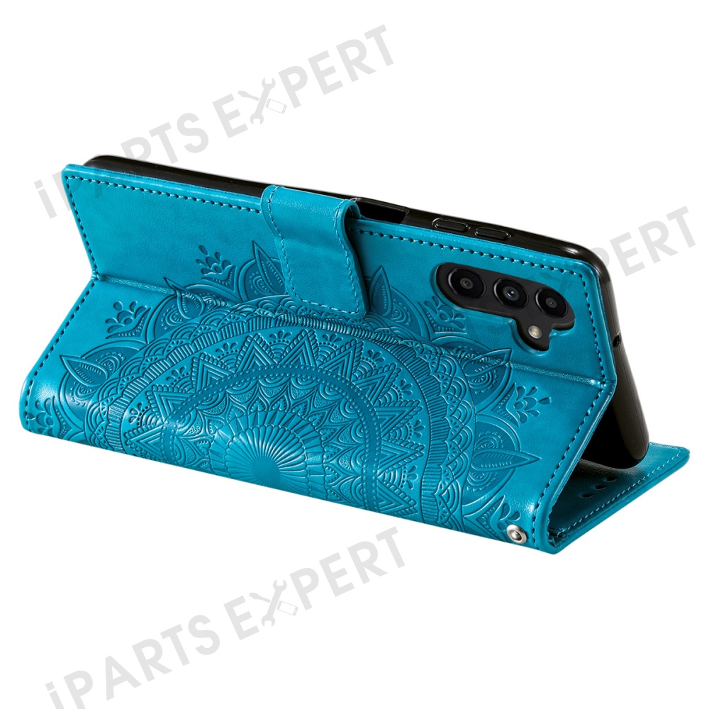 For Samsung Galaxy A26 5G Case Imprinted Totem PU Leather Wallet Stand Phone Cover - Blue