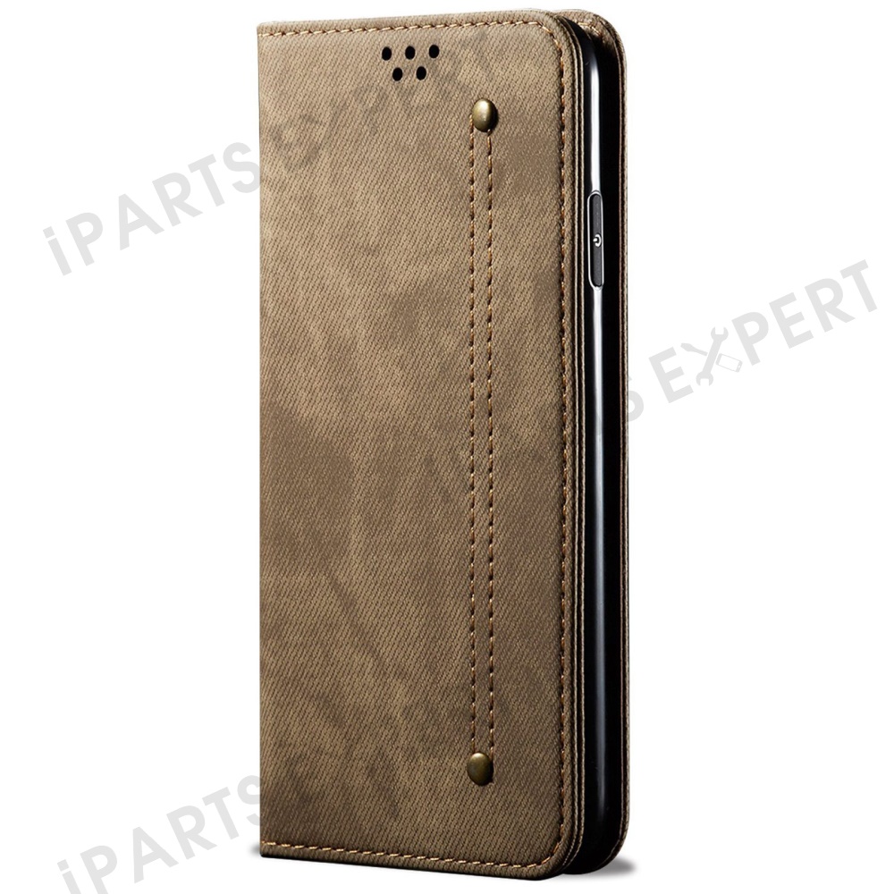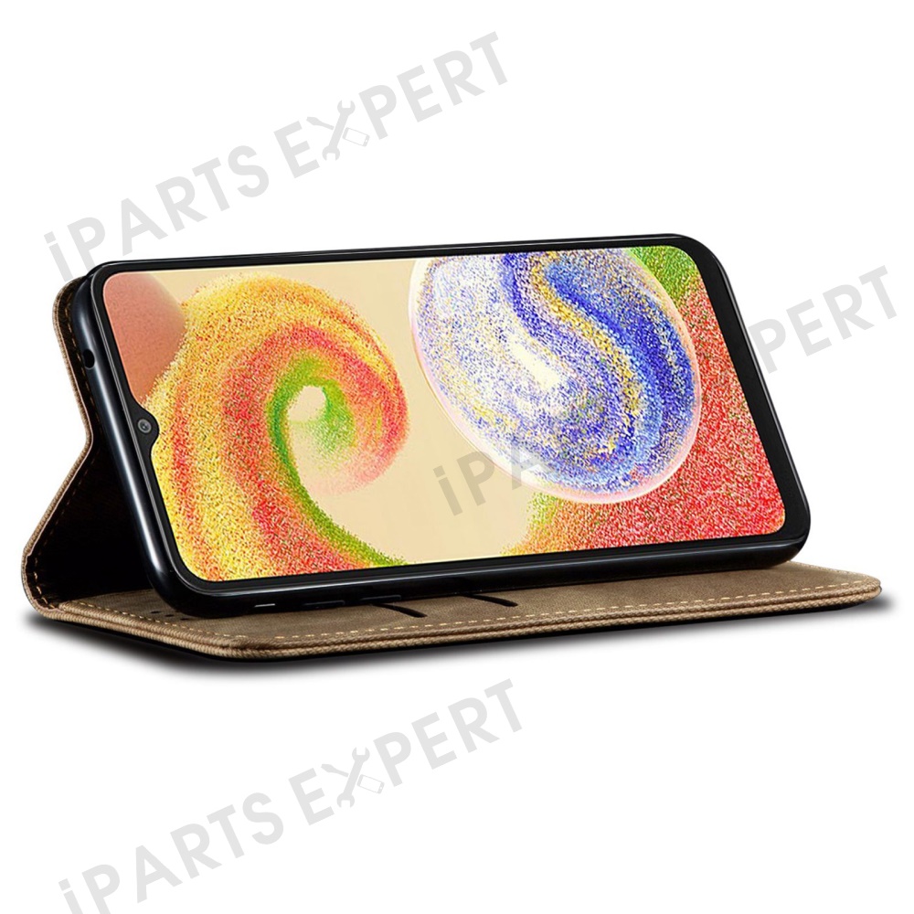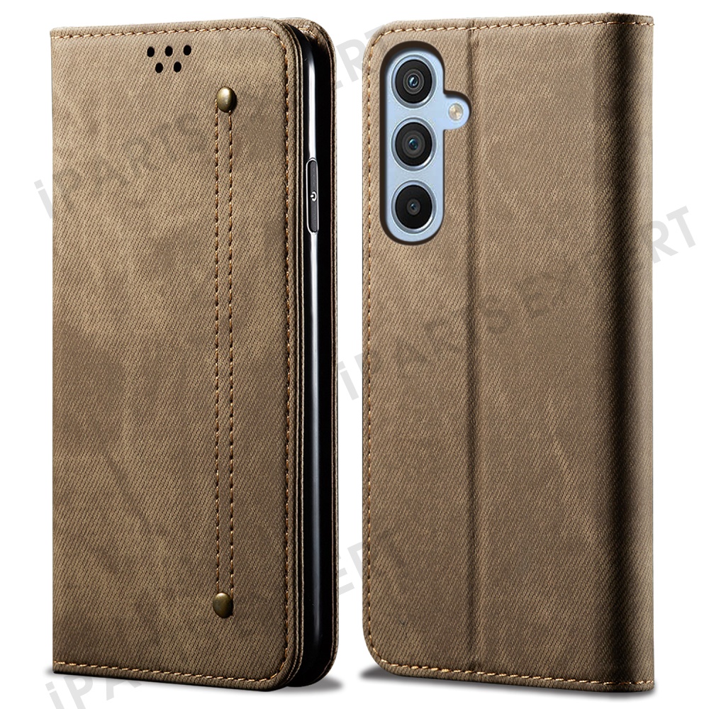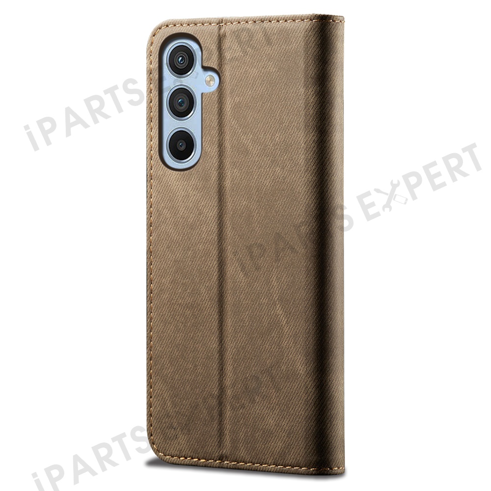 For Samsung Galaxy A26 5G Case Jeans Cloth Texture Anti-Scratch Leather Stand Phone Cover - Khaki