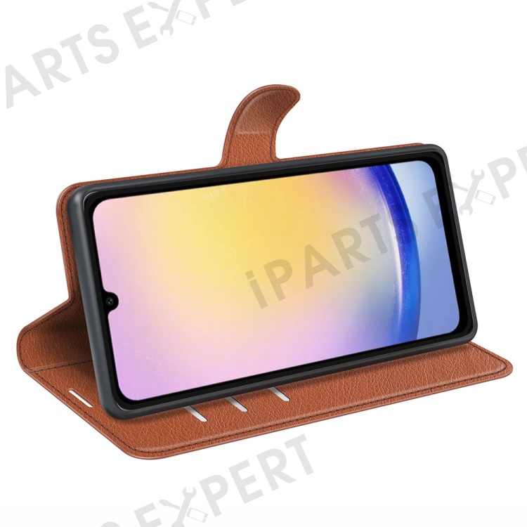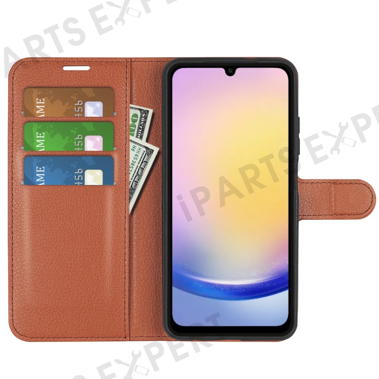 For Samsung Galaxy A26 5G Case Litchi Texture Shockproof Leather Wallet Phone Cover - Brown