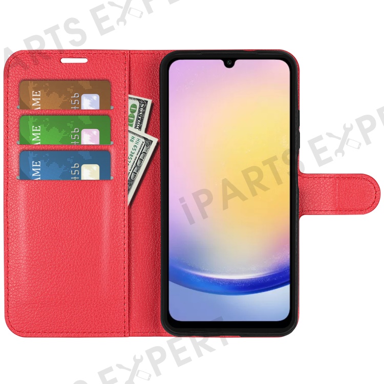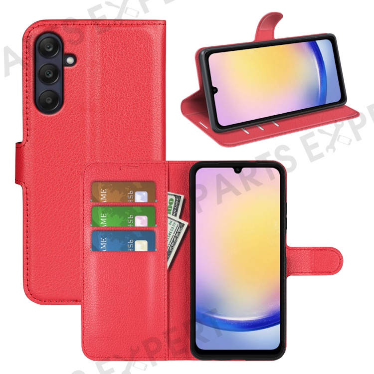 For Samsung Galaxy A26 5G Case Litchi Texture Shockproof Leather Wallet Phone Cover - Red