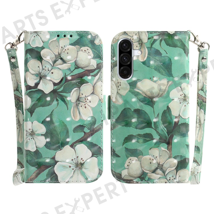 For Samsung Galaxy A17 5G / A17 4G / A26 5G Case Pattern Printing Leather Wallet Phone Cover with Wrist Strap - Watercolor Flowers