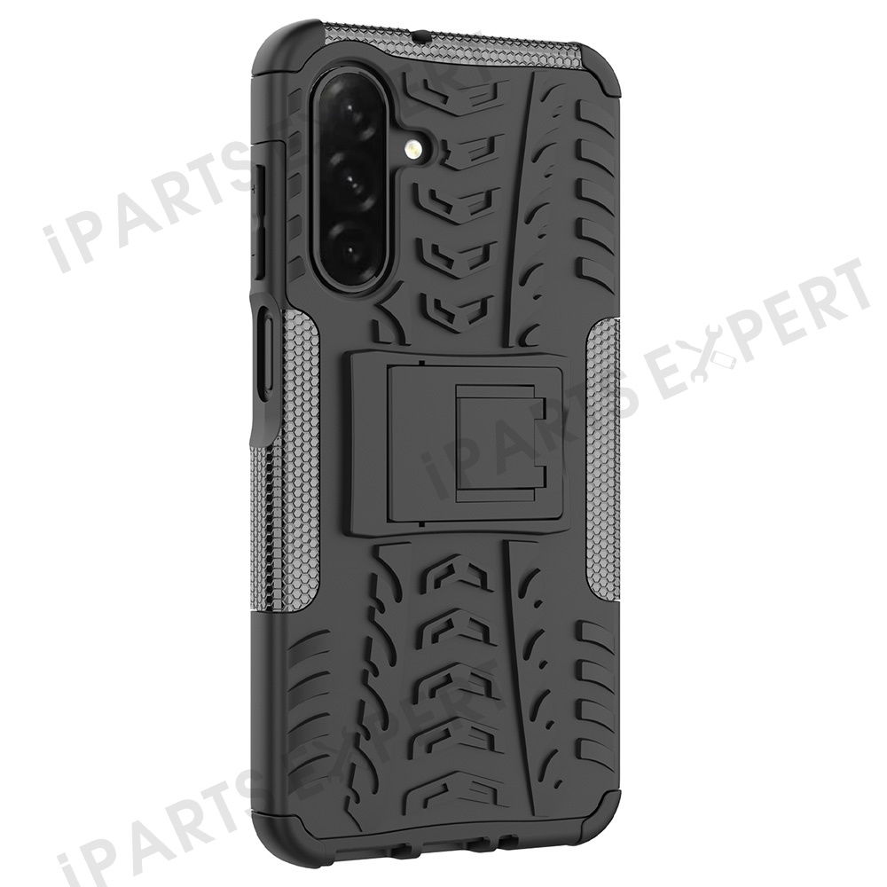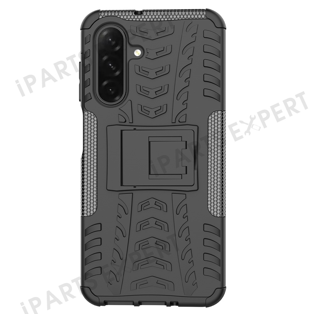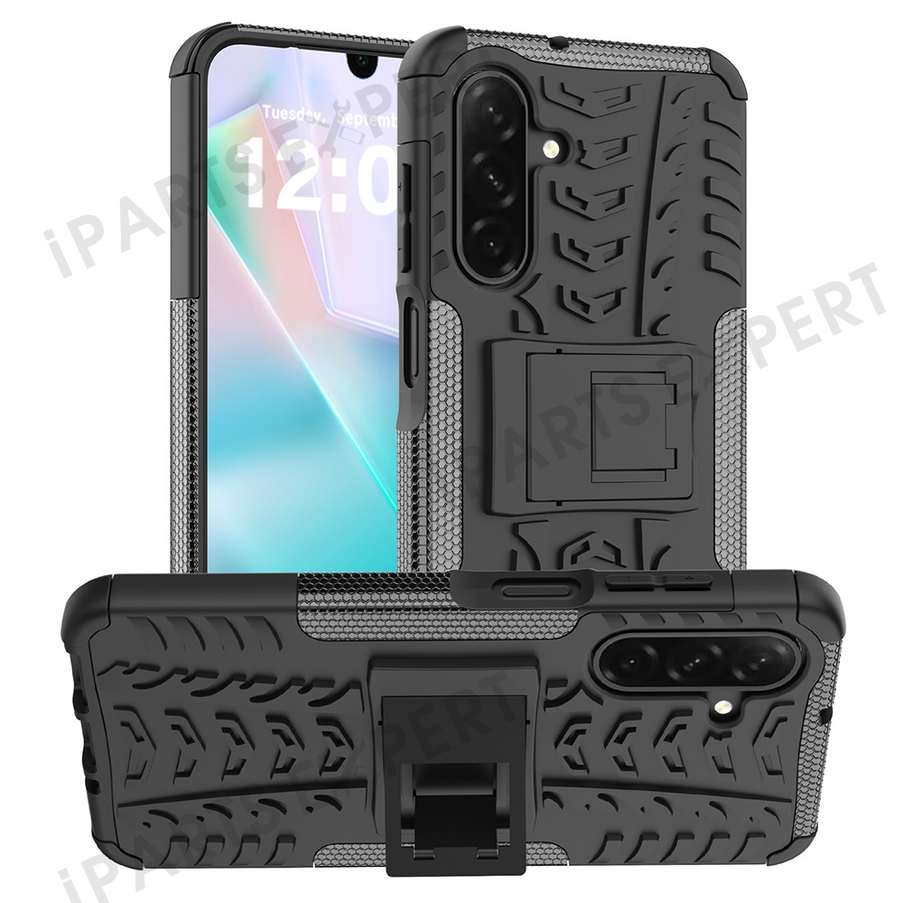 For Samsung Galaxy A26 5G Case Tyre Pattern Design PC + TPU Phone Cover with Kickstand - Black