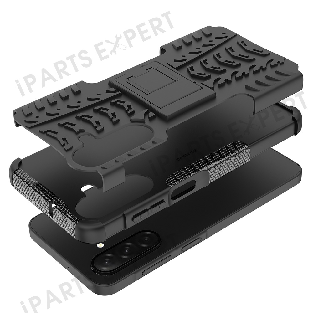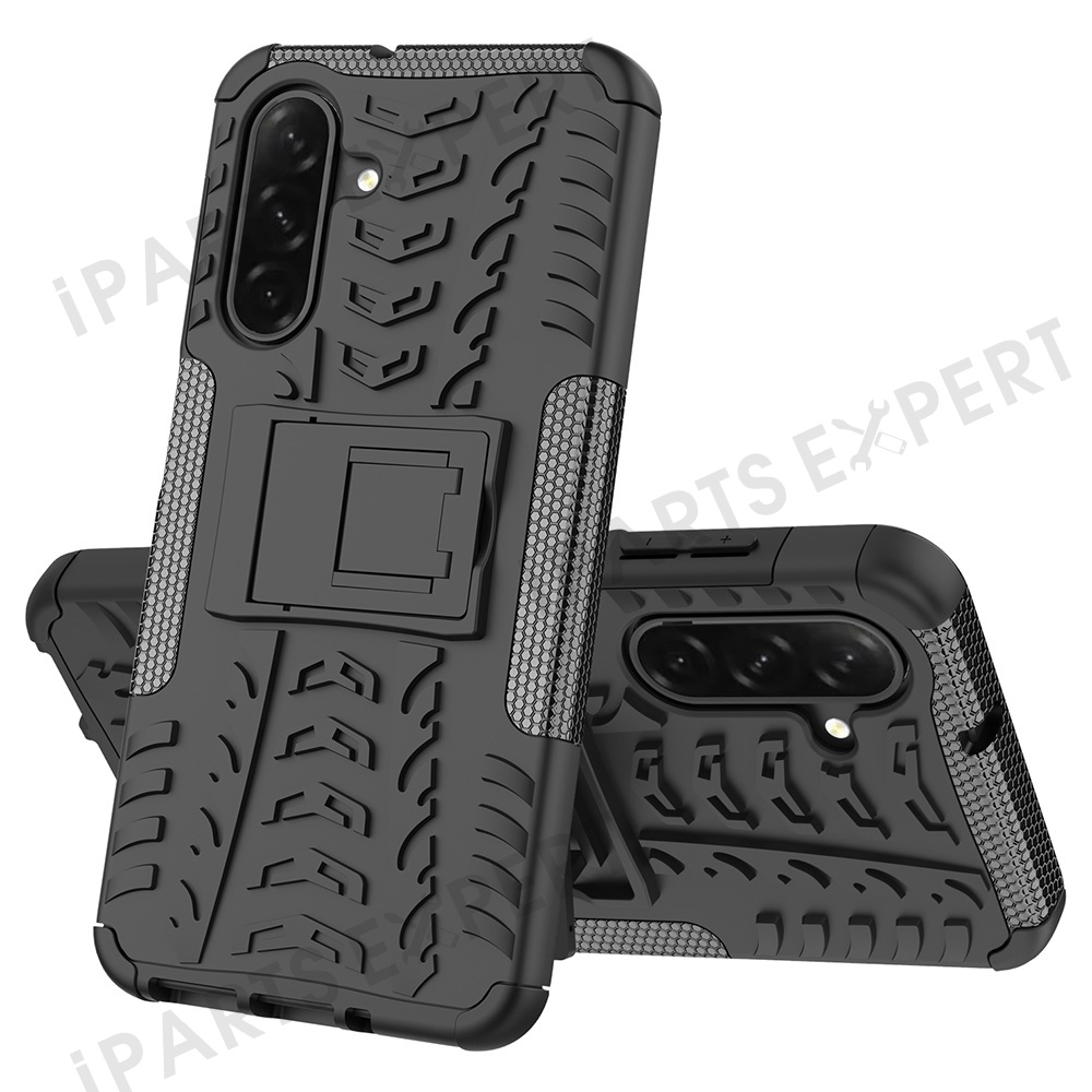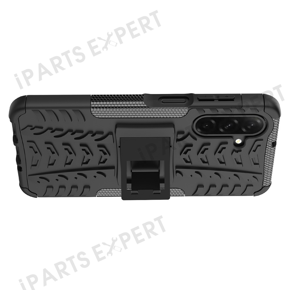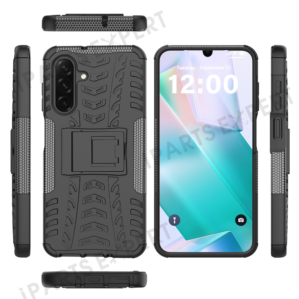For Samsung Galaxy A26 5G Case Tyre Pattern Design PC + TPU Phone Cover with Kickstand - Black