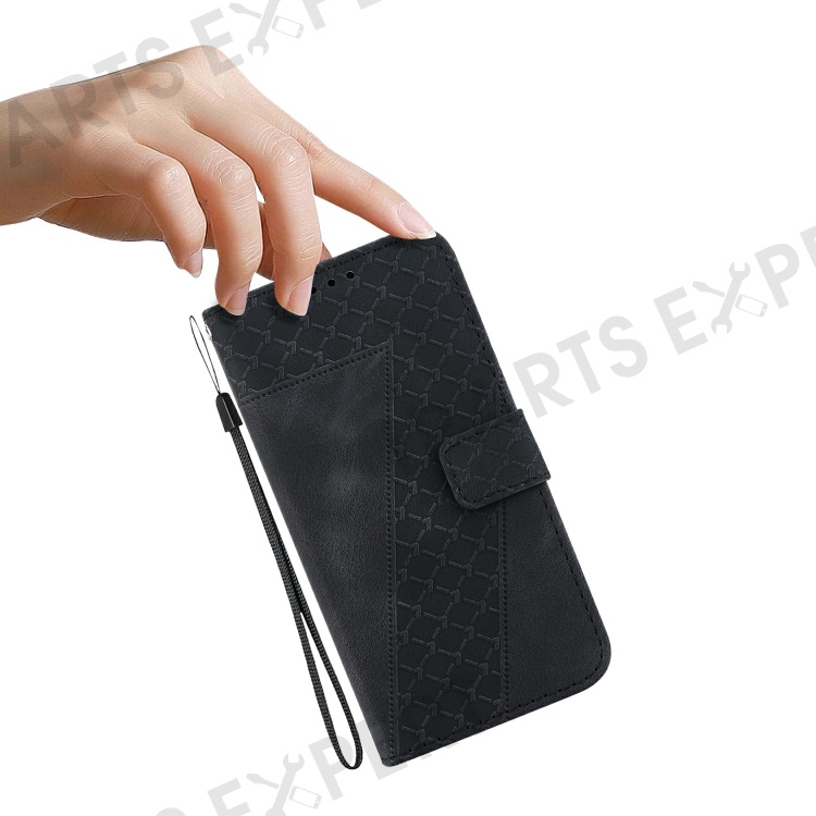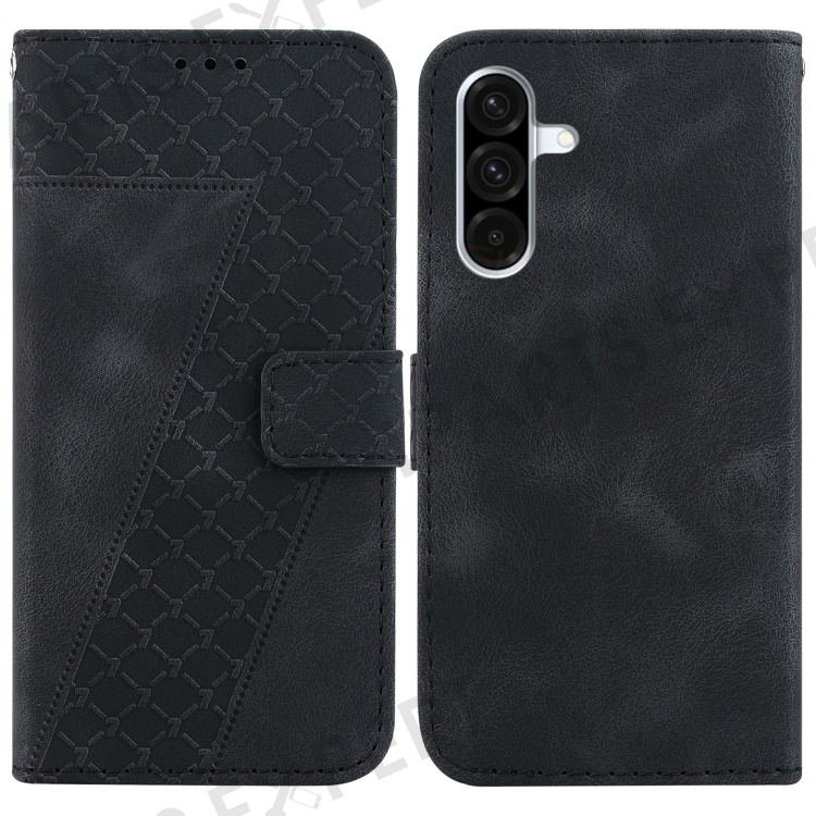 For Samsung Galaxy A17 5G / A17 4G / A26 5G Stand Case 7-Shaped Pattern Imprint Leather Phone Cover - Black