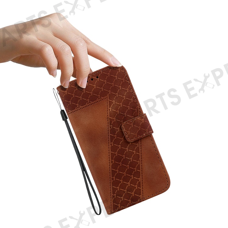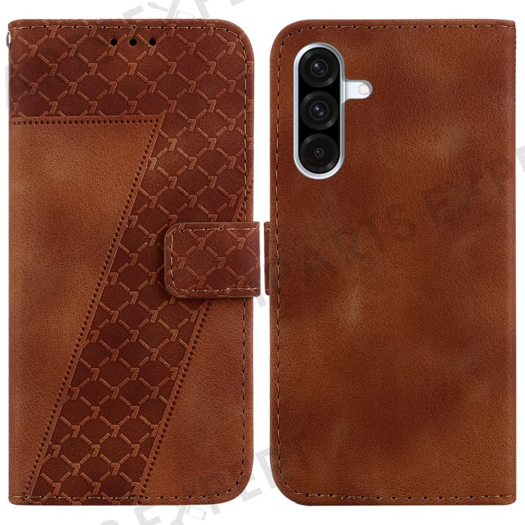 For Samsung Galaxy A17 5G / A17 4G / A26 5G Stand Case 7-Shaped Pattern Imprint Leather Phone Cover - Brown