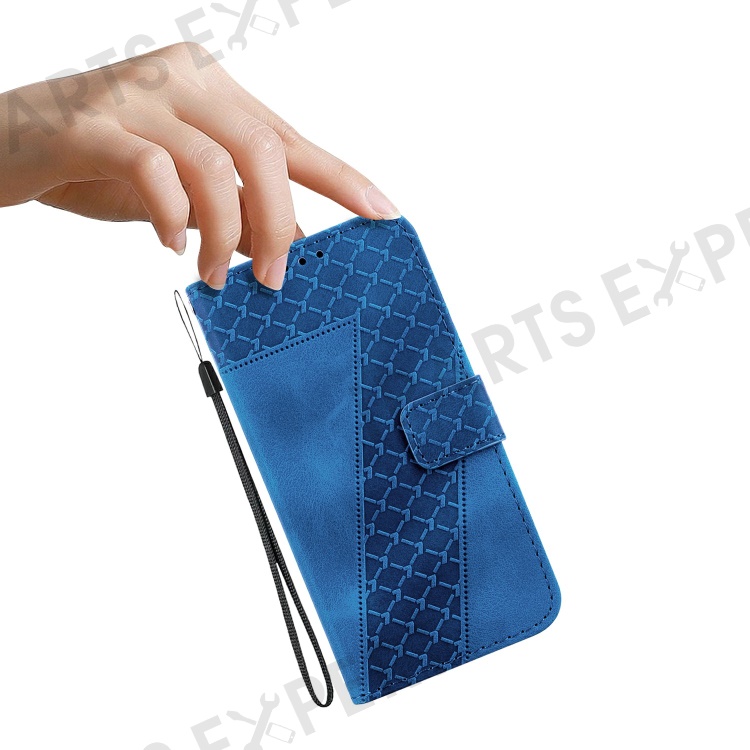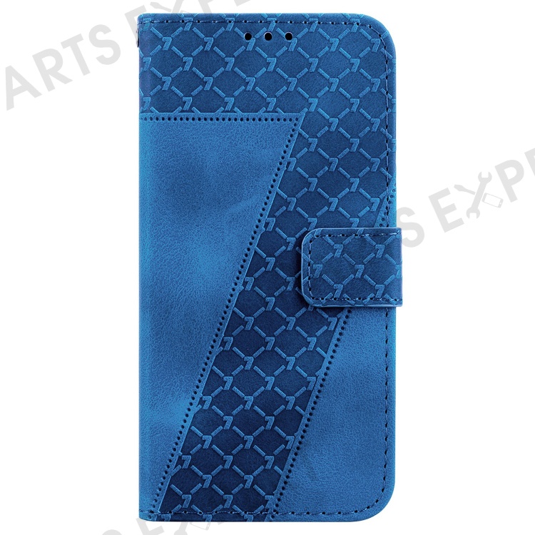 For Samsung Galaxy A17 5G / A17 4G / A26 5G Stand Case 7-Shaped Pattern Imprint Leather Phone Cover - Dark Blue
