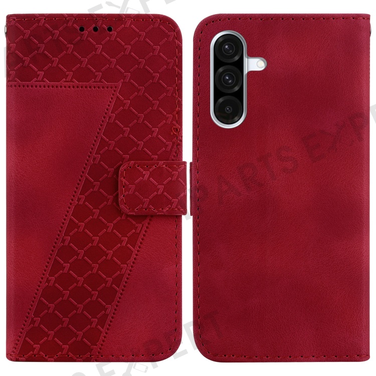 For Samsung Galaxy A17 5G / A17 4G / A26 5G Stand Case 7-Shaped Pattern Imprint Leather Phone Cover - Red