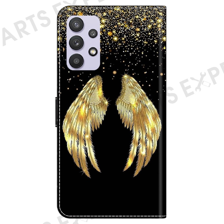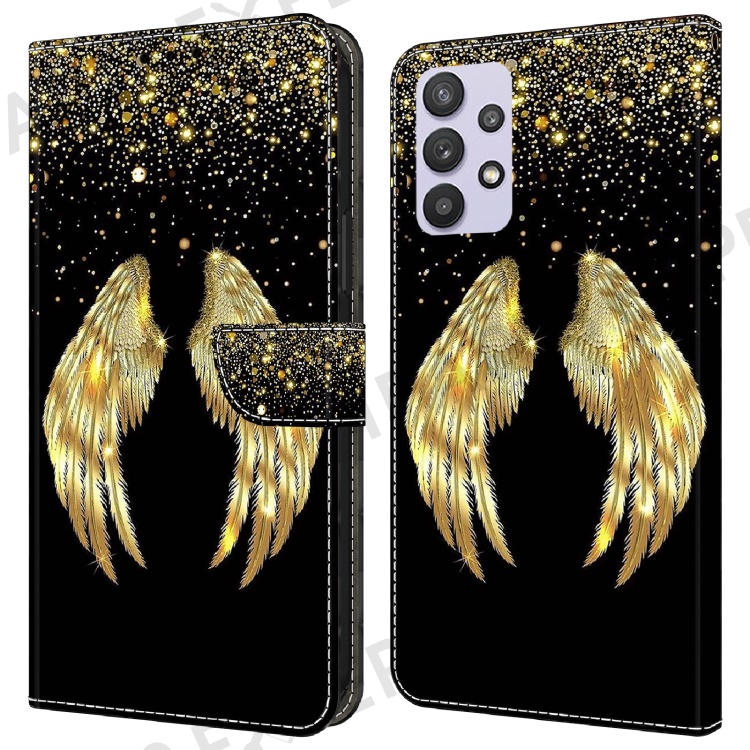 For Samsung Galaxy A32 5G Leather Phone Case 3D Pattern Printing Stand Wallet Folio Cover - Gold Wing