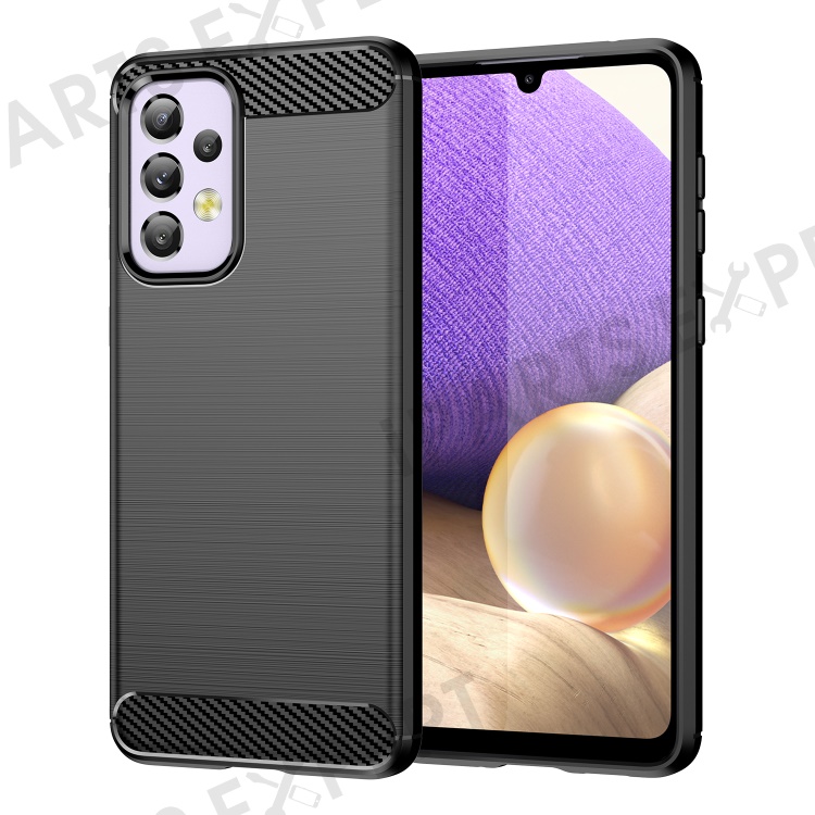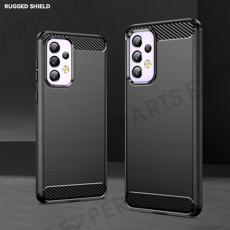 For Samsung Galaxy A33 5G Anti-scratch Shockproof 1.8mm TPU Case Brushed Surface Carbon Fiber Texture Phone Cover - Black