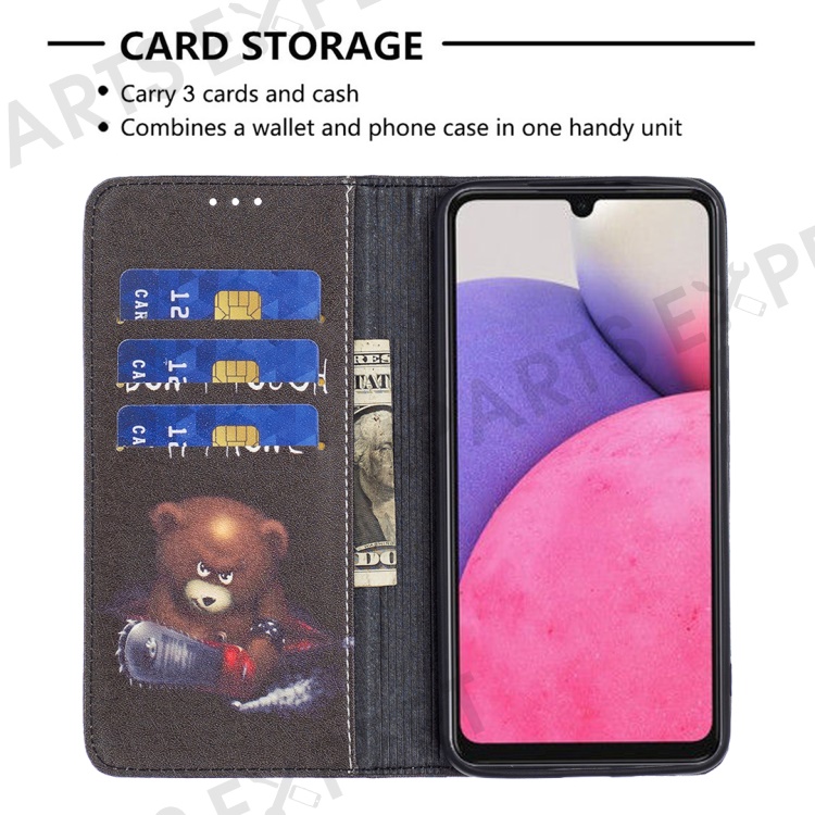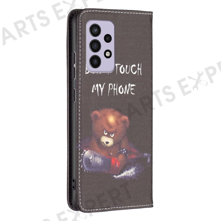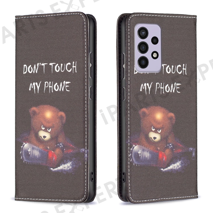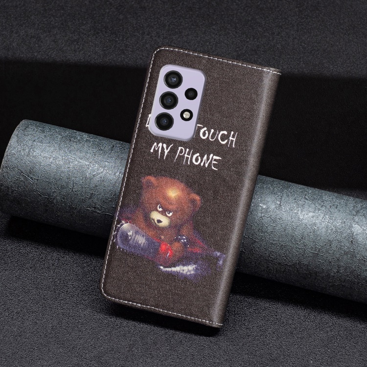 For Samsung Galaxy A33 5G Pattern Printing PU Leather Cover Stand Hidden Magnetic Adsorption Shockproof Flip Wallet Phone Case - Bear