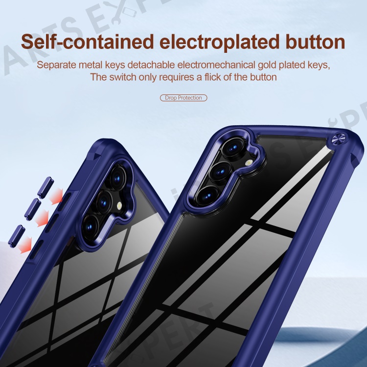 For Samsung Galaxy A34 5G Alloy Lens Frame Drop-proof Phone Case PC+TPU Hybrid Back Cover - Blue