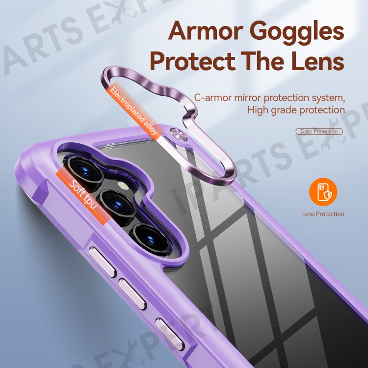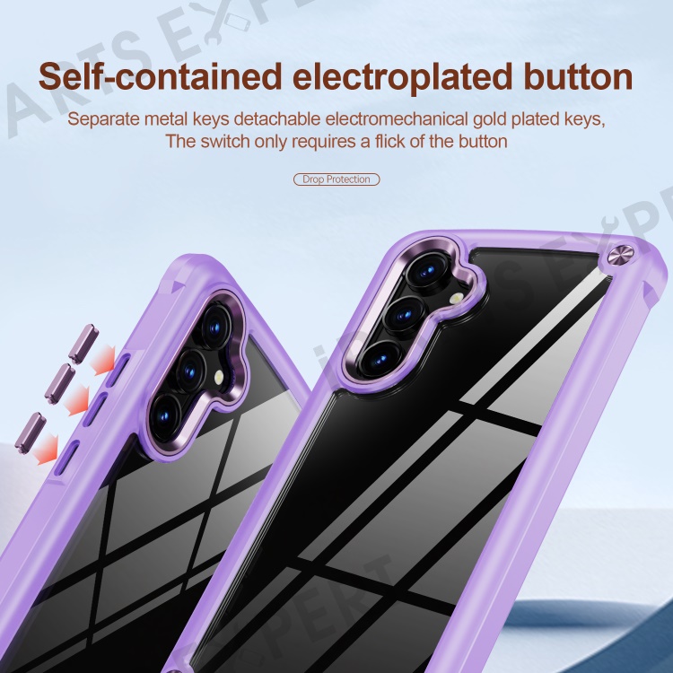 For Samsung Galaxy A34 5G Alloy Lens Frame Drop-proof Phone Case PC+TPU Hybrid Back Cover - Purple