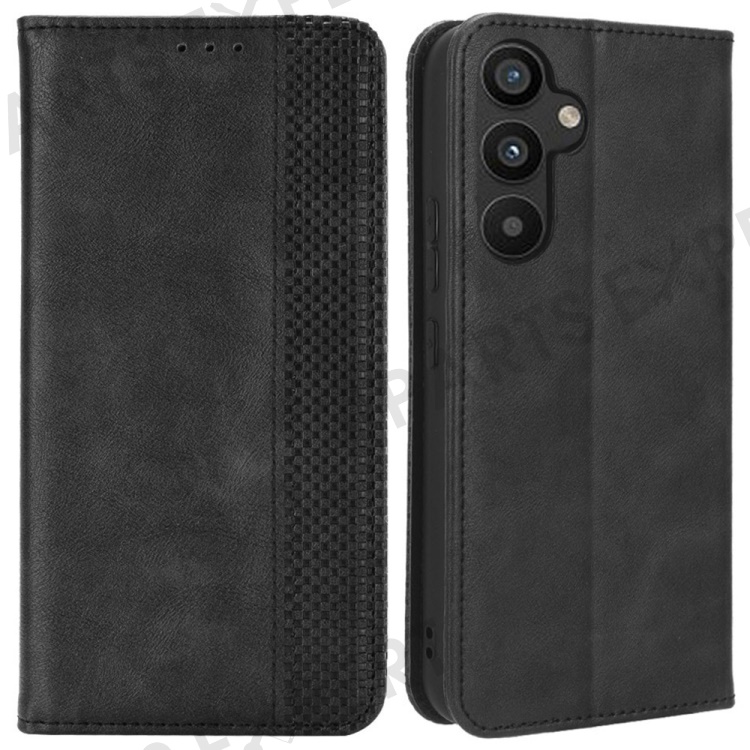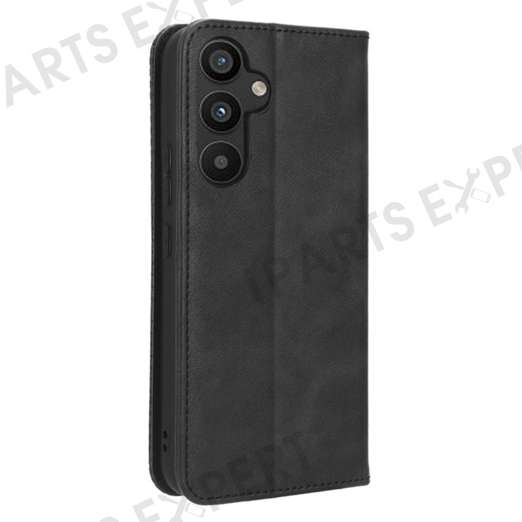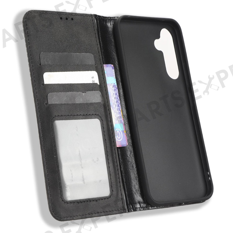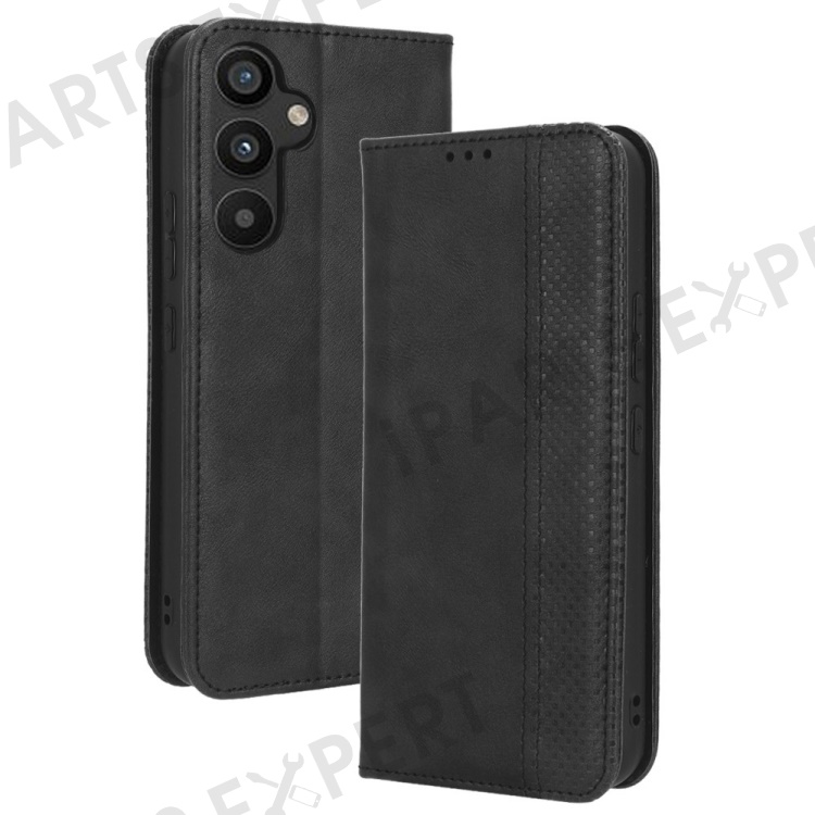 For Samsung Galaxy A34 5G Anti-fall Phone Case Stand Retro Texture Imprinted Pattern Magnetic Auto Closing Flip Leather Wallet Phone Cover - Black