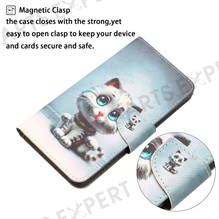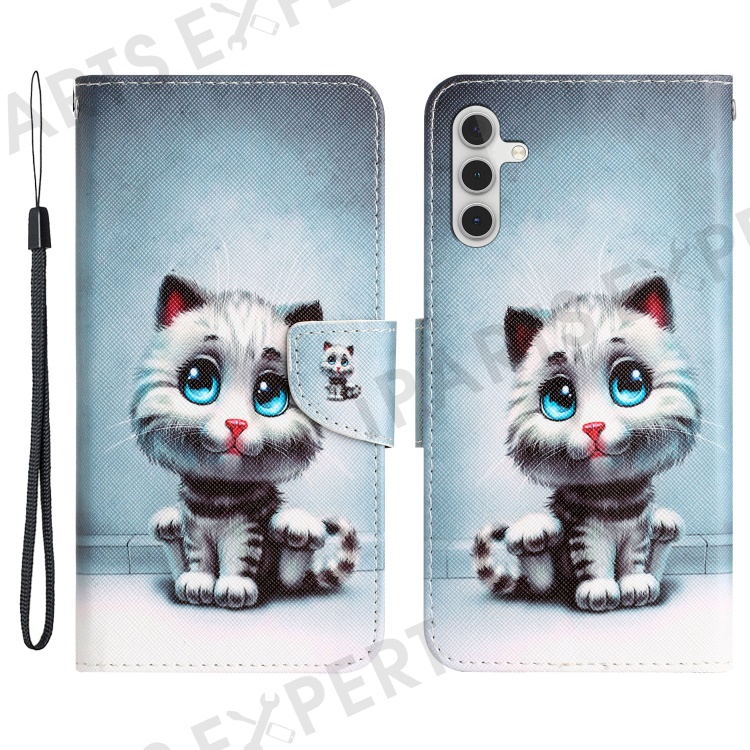 For Samsung Galaxy A34 5G Cross Texture PU Leather Flip Protective Case Pattern Printing Magnetic Stand Wallet Cover with Strap - Blue Eyes Cat