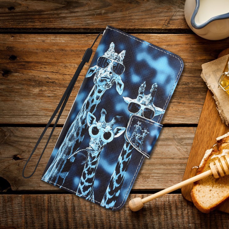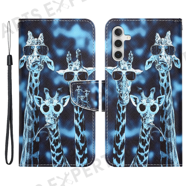 For Samsung Galaxy A34 5G Cross Texture PU Leather Flip Protective Case Pattern Printing Magnetic Stand Wallet Cover with Strap - Giraffes