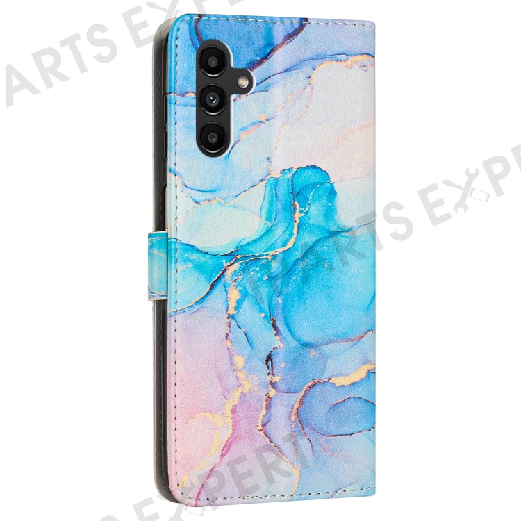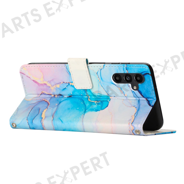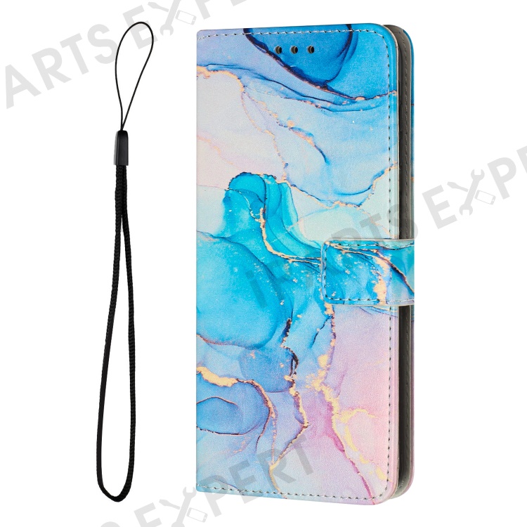 For Samsung Galaxy A34 5G Leather Phone Cover Stand Wallet Marble Pattern Phone Case with Strap - Pink / Green