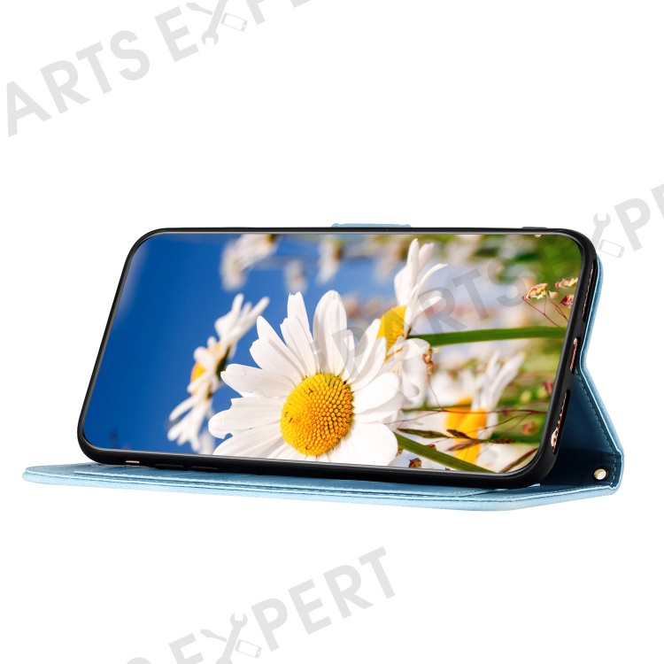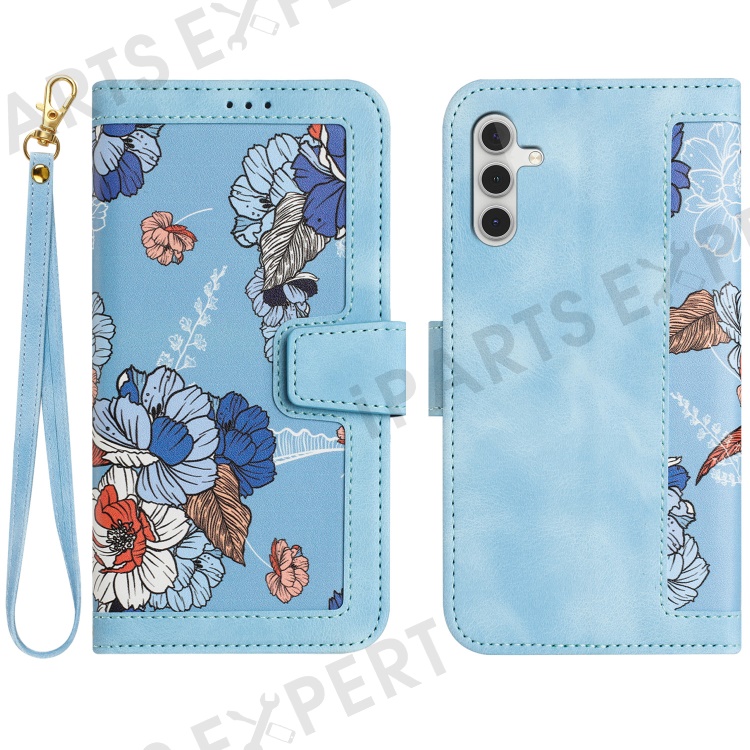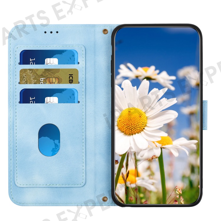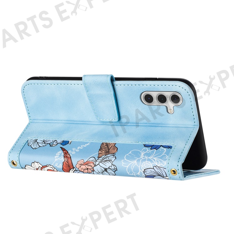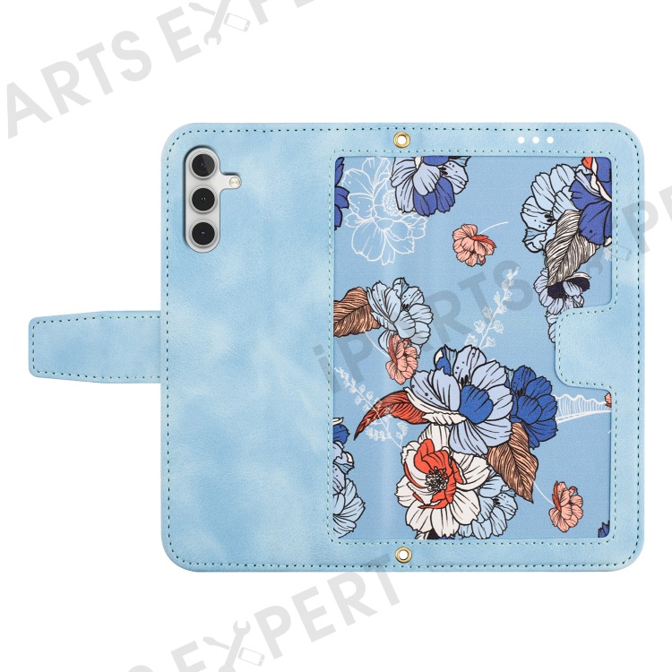 For Samsung Galaxy A34 5G Phone Case Flower Pattern Printing Stand Leather Cover with Card Slots - Baby Blue