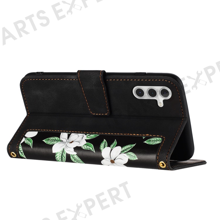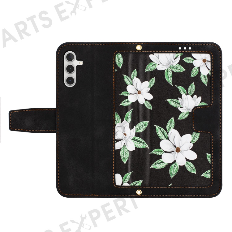 For Samsung Galaxy A34 5G Phone Case Flower Pattern Printing Stand Leather Cover with Card Slots - Black