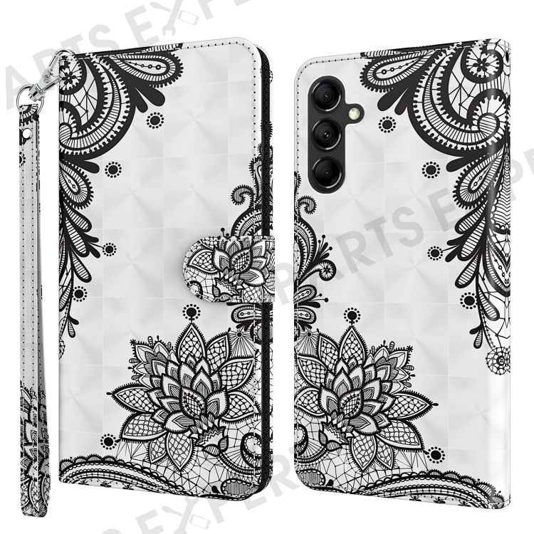 For Samsung Galaxy A34 5G PU Leather Phone Case 3D Pattern Printing Stand Wallet Flip Cover - Lace Flower