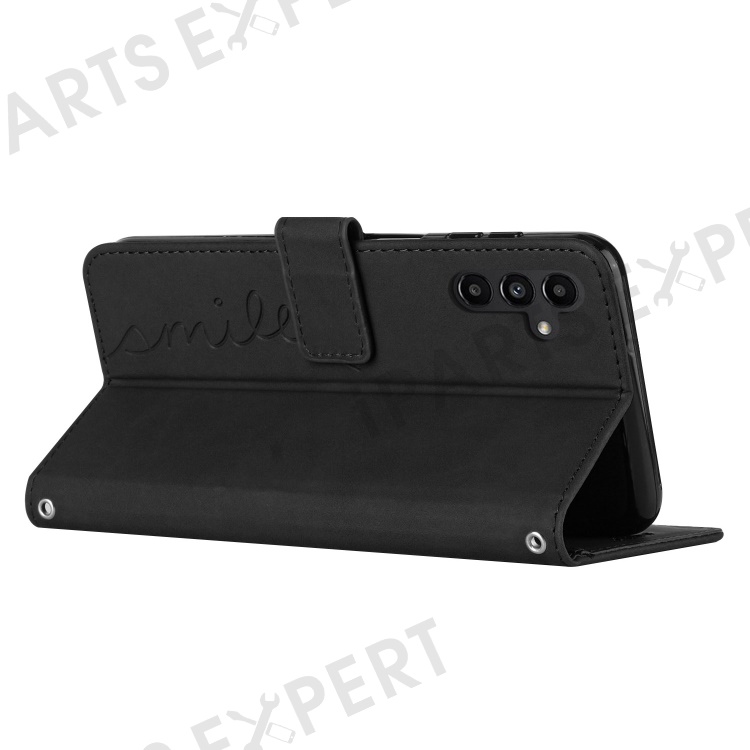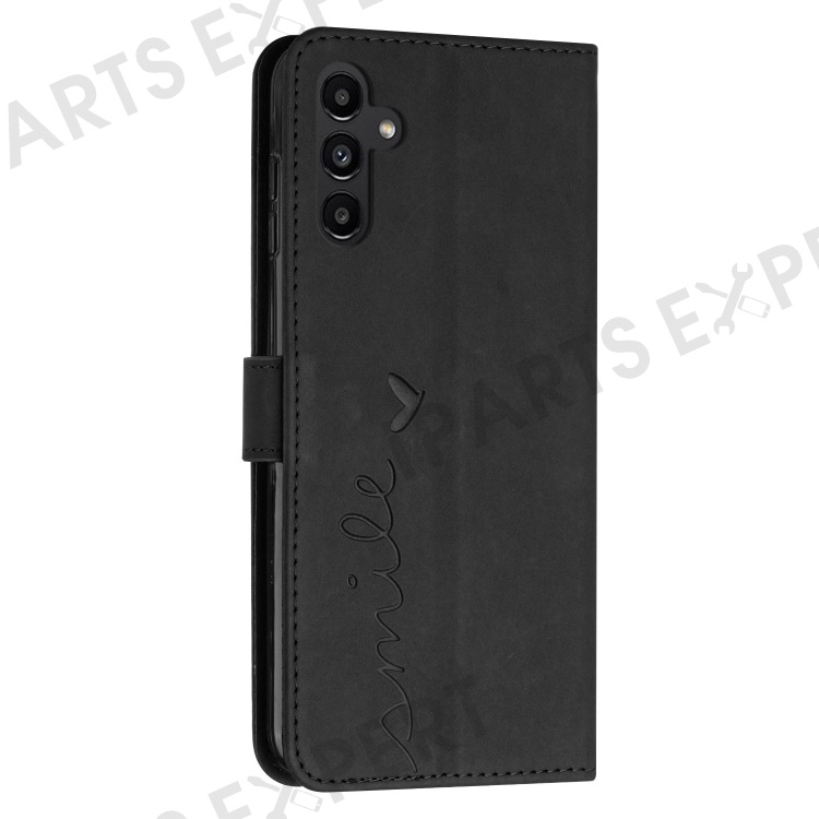 For Samsung Galaxy A34 5G PU Leather Wallet Phone Cover Imprinted Heart Shape Skin-touch Feeling Anti-shock Phone Case Stand with Shoulder Strap - Black