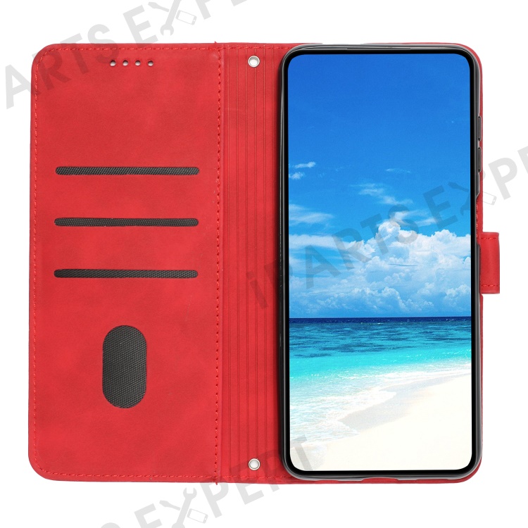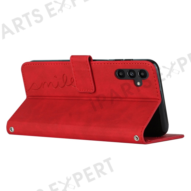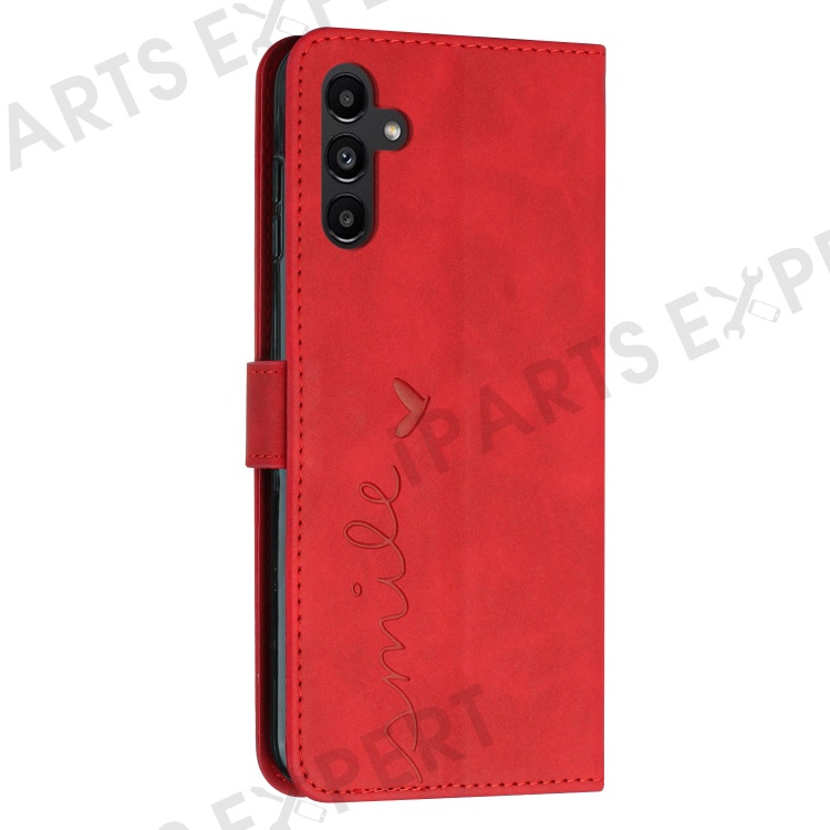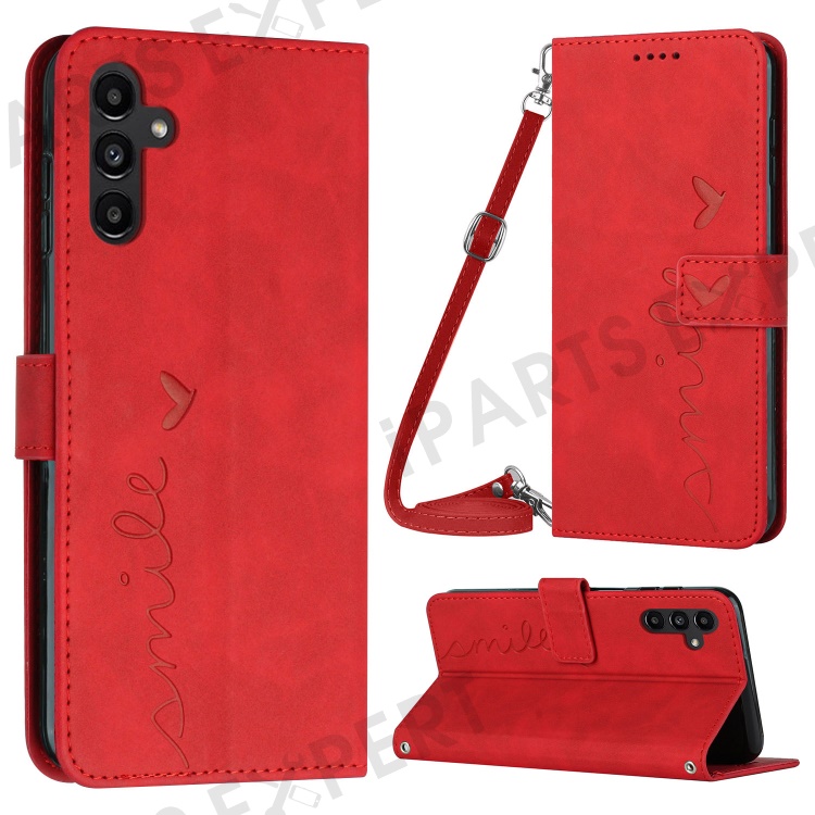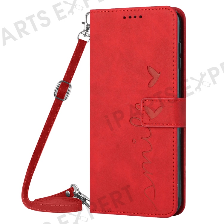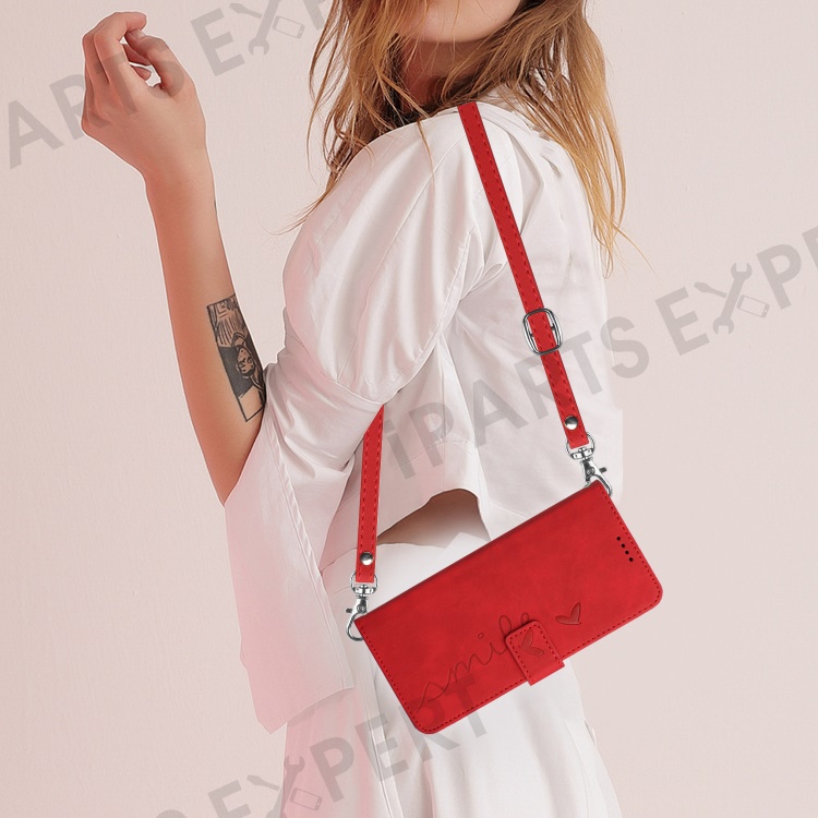 For Samsung Galaxy A34 5G PU Leather Wallet Phone Cover Imprinted Heart Shape Skin-touch Feeling Anti-shock Phone Case Stand with Shoulder Strap - Red