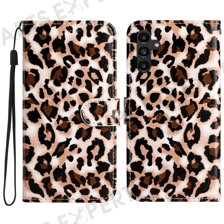 For Samsung Galaxy A34 5G Wallet Phone Case PU Leather Pattern Printing Stand Flip Cover - Leopard Print