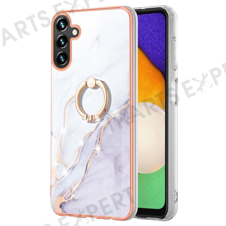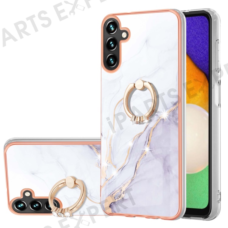 For Samsung Galaxy A34 5G Case with Ring Kickstand Marble Pattern Electroplating TPU Back Cover - White 006