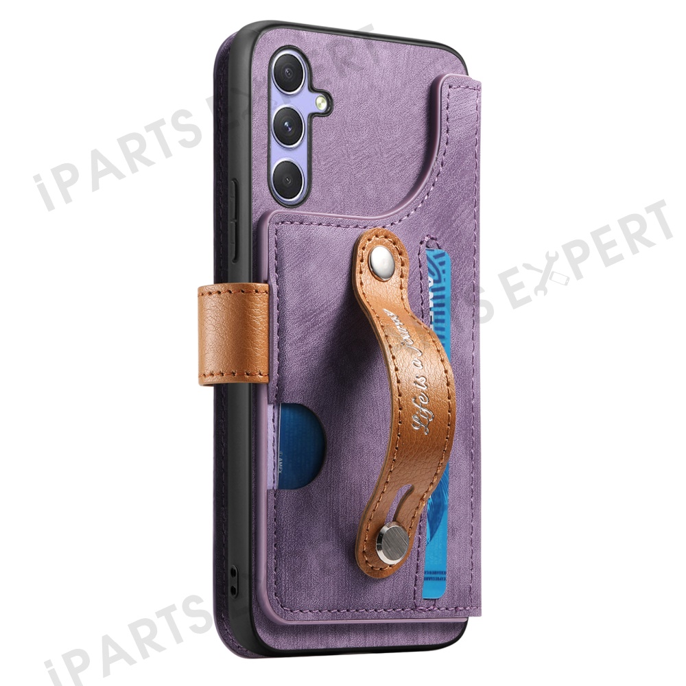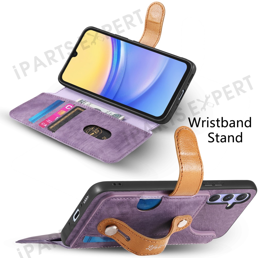 For Samsung Galaxy A35 5G Case Wallet Retro Leather Phone Cover with Wristband Kickstand - Purple