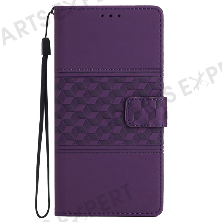 For Samsung Galaxy A35 5G Phone Case Imprinted Rhombus Wallet Stand Leather Cover - Purple