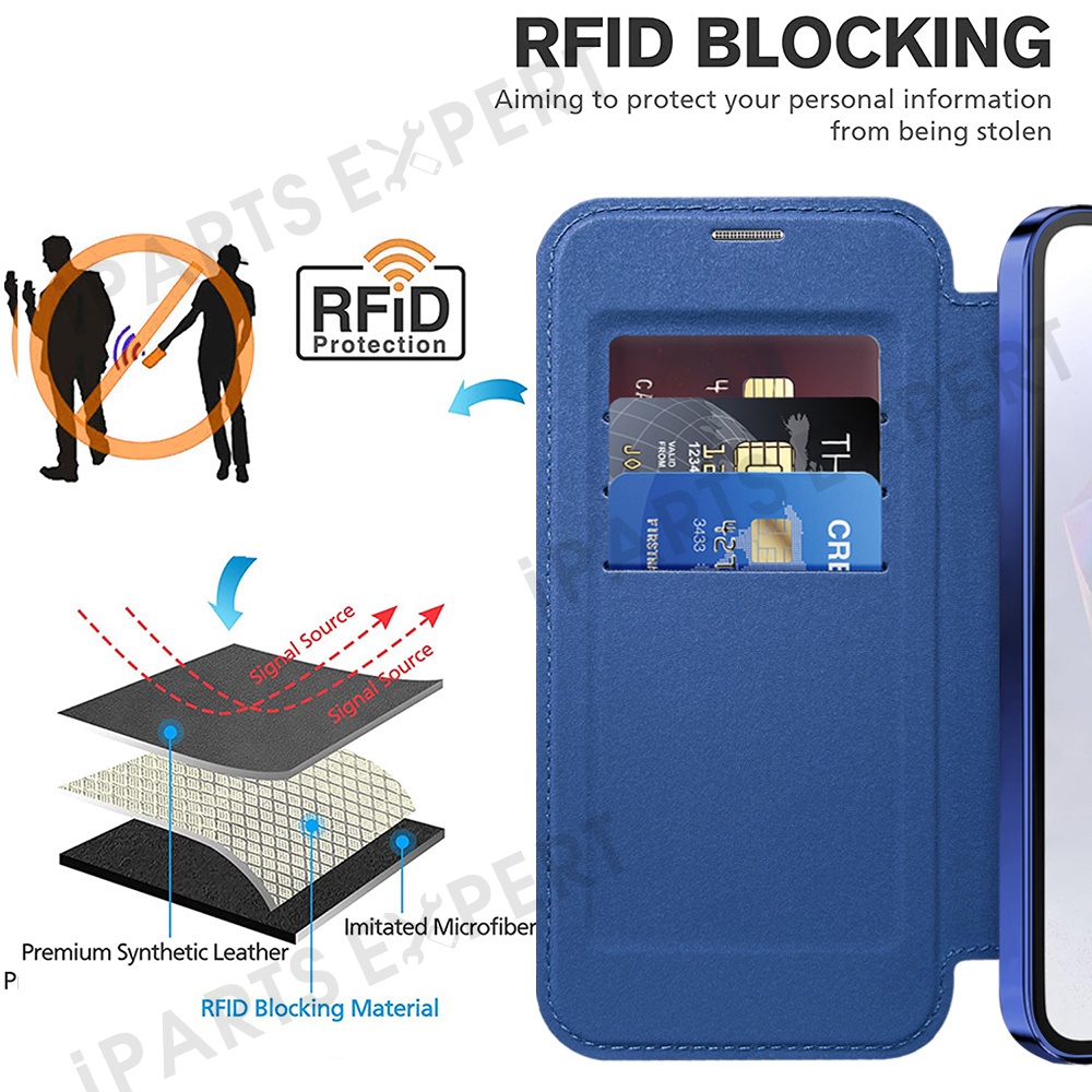 For Samsung Galaxy A36 5G Magnetic Case RFID Blocking Leather Phone Cover - Sapphire