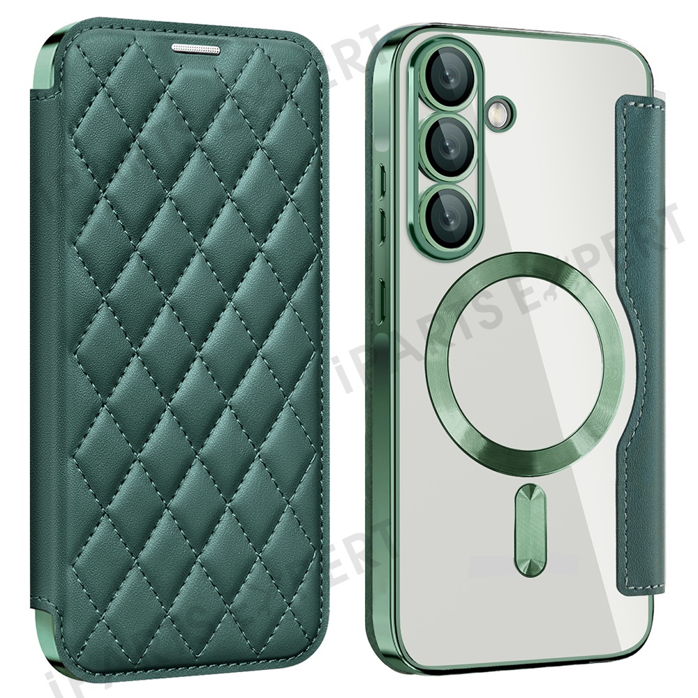 For Samsung Galaxy A36 5G Magnetic Case Rhombus PU Leather Phone Cover - Blackish Green