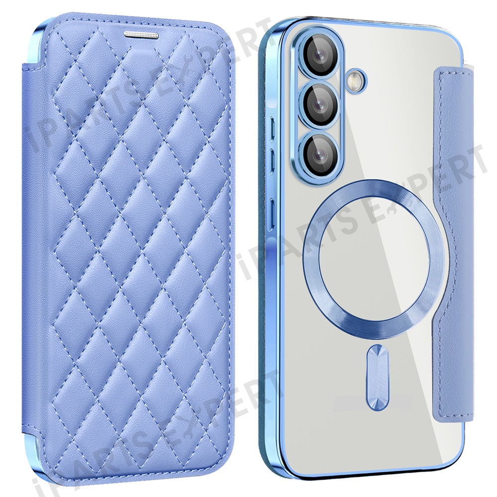 For Samsung Galaxy A36 5G Magnetic Case Rhombus PU Leather Phone Cover - Blue
