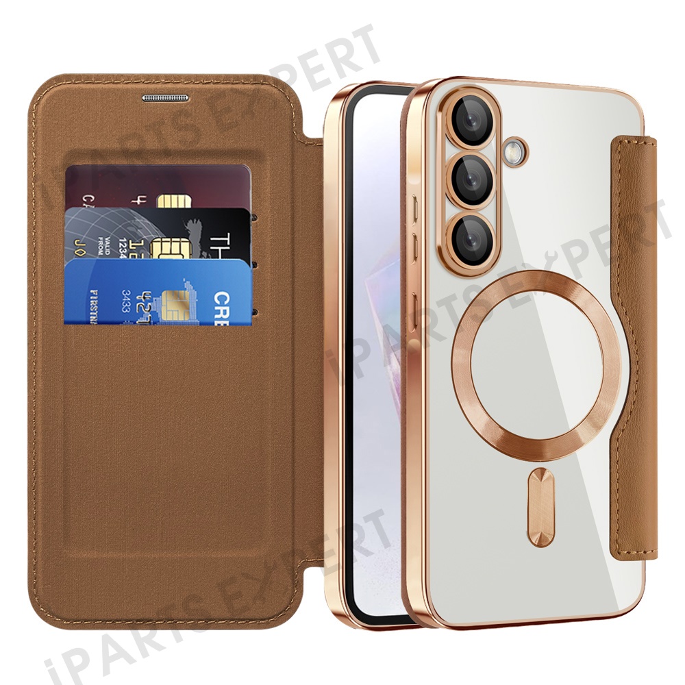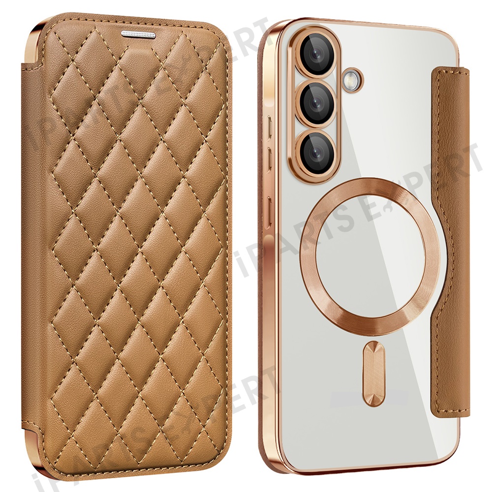 For Samsung Galaxy A36 5G Magnetic Case Rhombus PU Leather Phone Cover - Brown