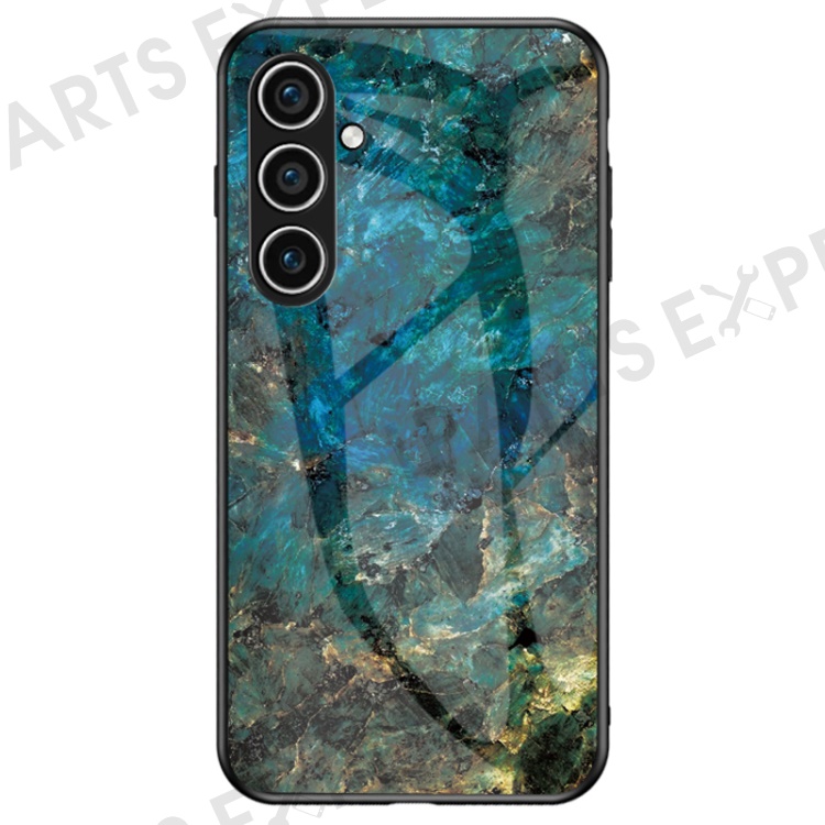 For Samsung Galaxy A36 5G Case Marble Pattern Tempered Glass + PC + TPU Protective Phone Cover - Emerald Marble