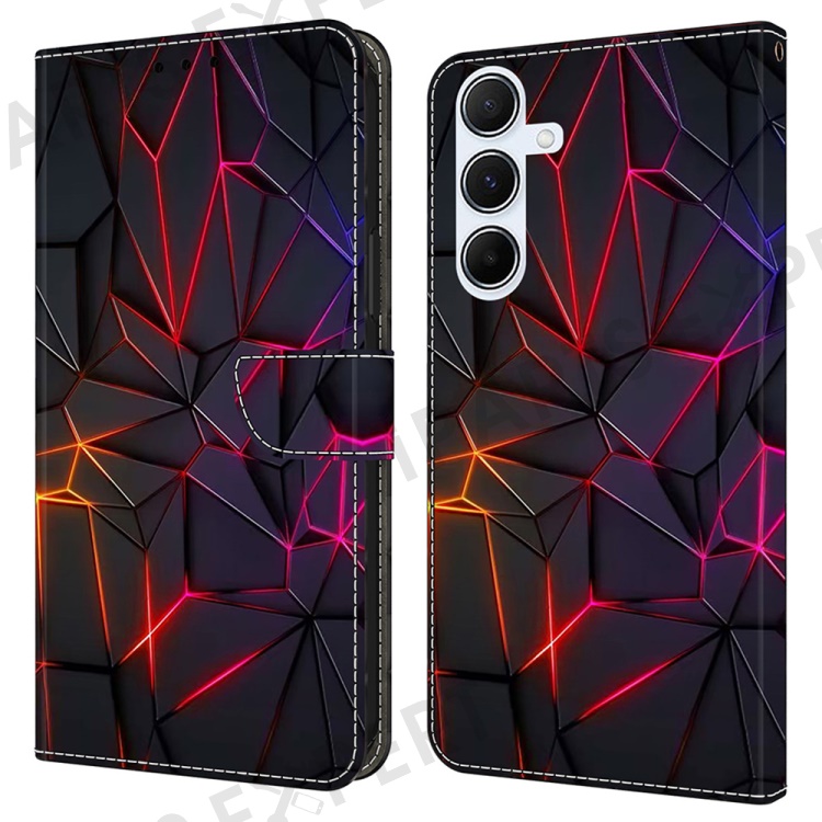 For Samsung Galaxy A36 5G / A56 5G Case Pattern Printed Protective Cover TPU+PU Leather Flip Phone Case - Red Cracks