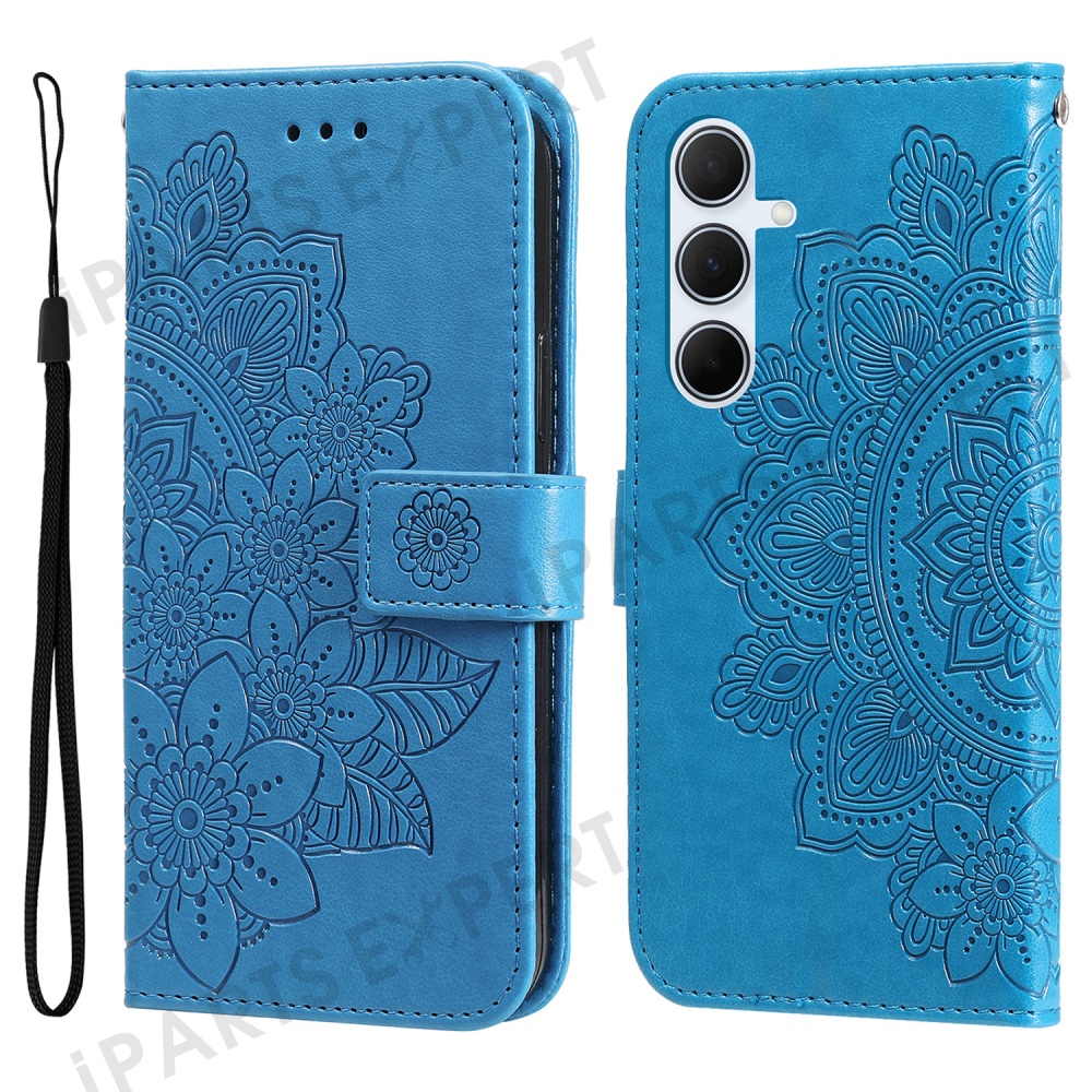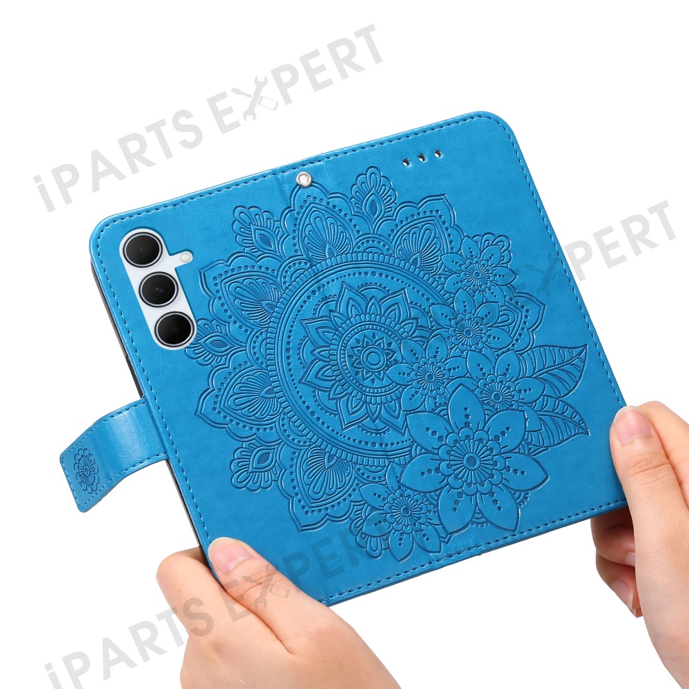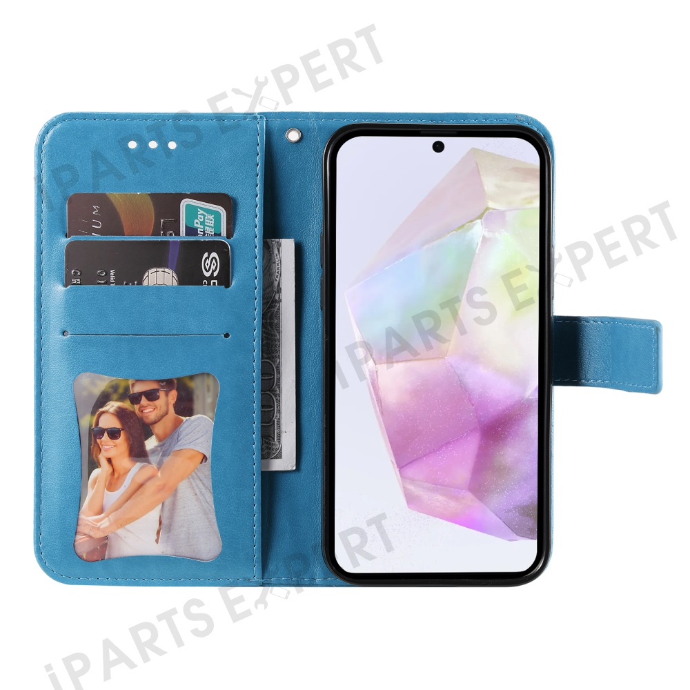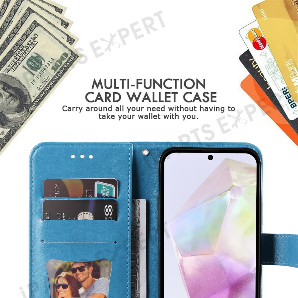 For Samsung Galaxy A36 5G Case Floral Pattern PU Leather Wallet Stand Phone Cover - Blue