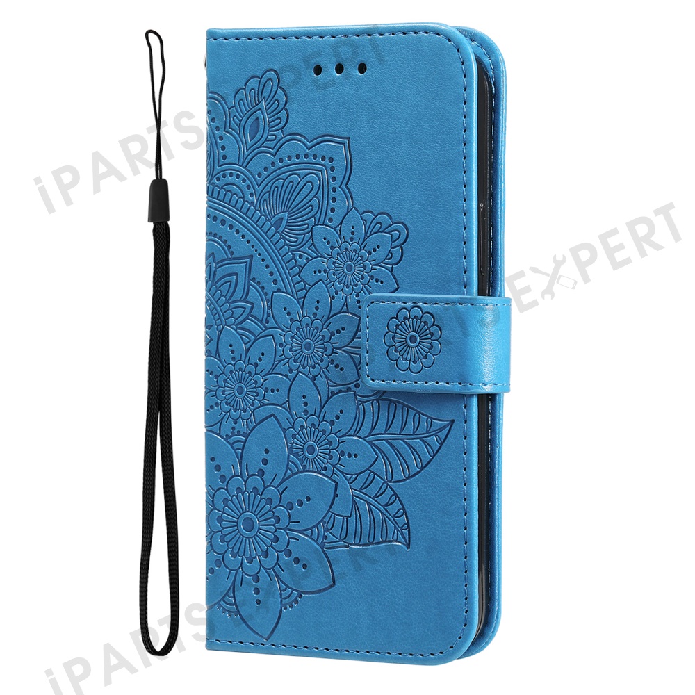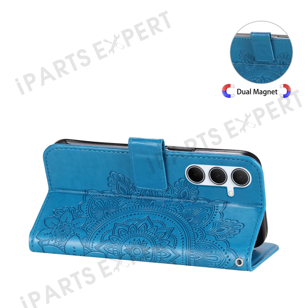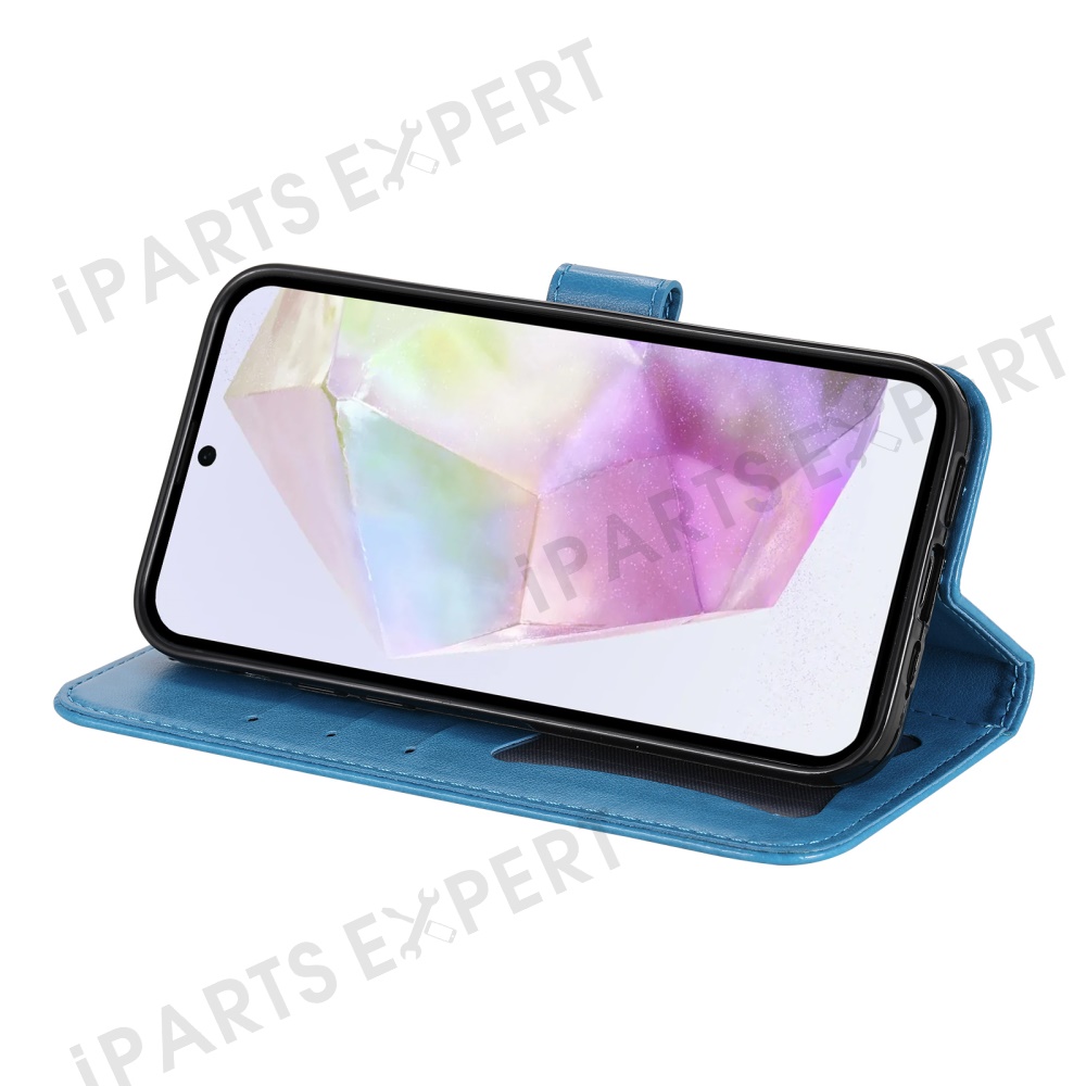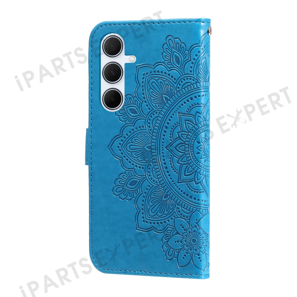 For Samsung Galaxy A36 5G Case Floral Pattern PU Leather Wallet Stand Phone Cover - Blue