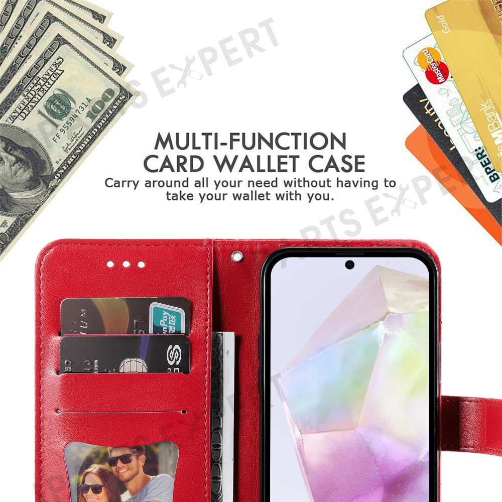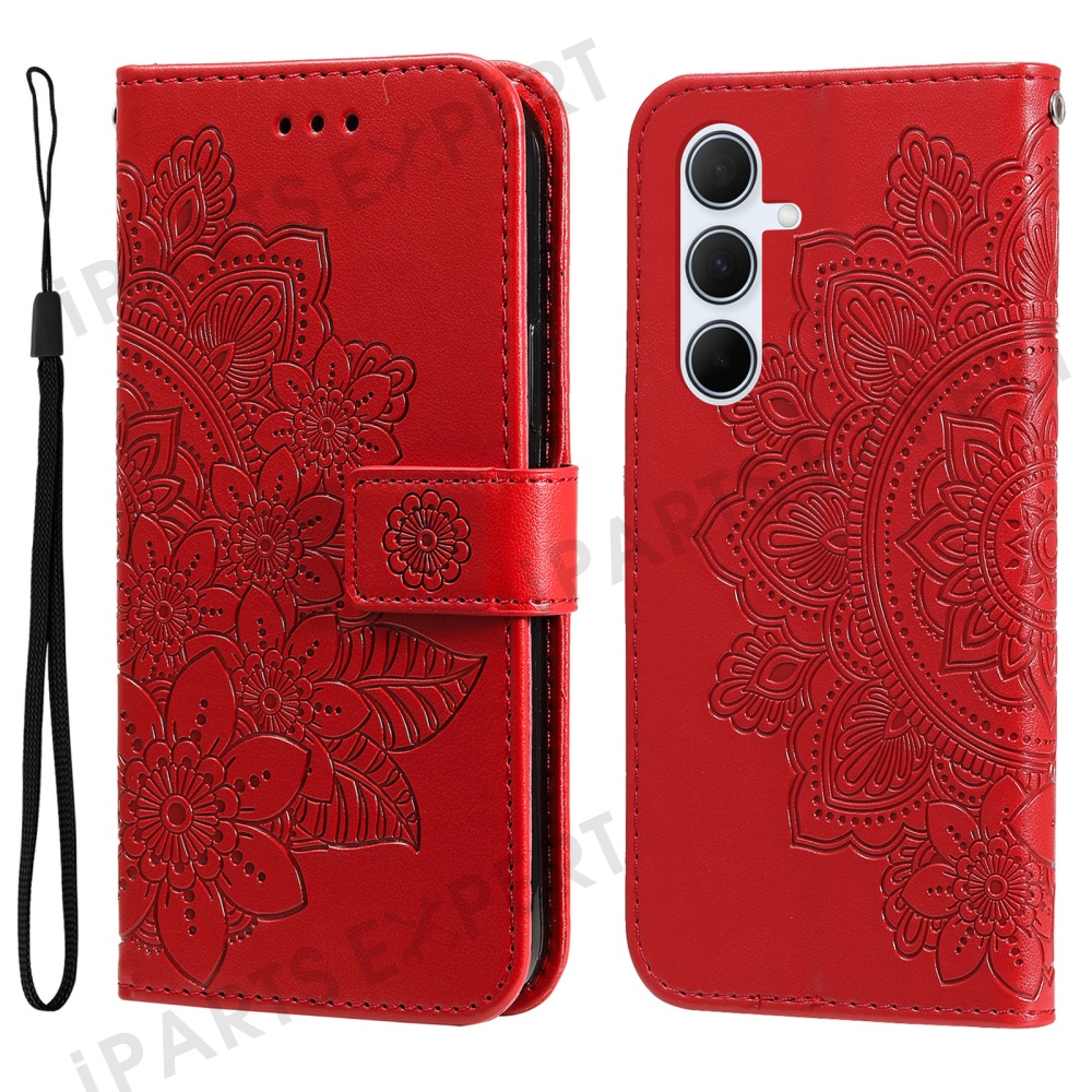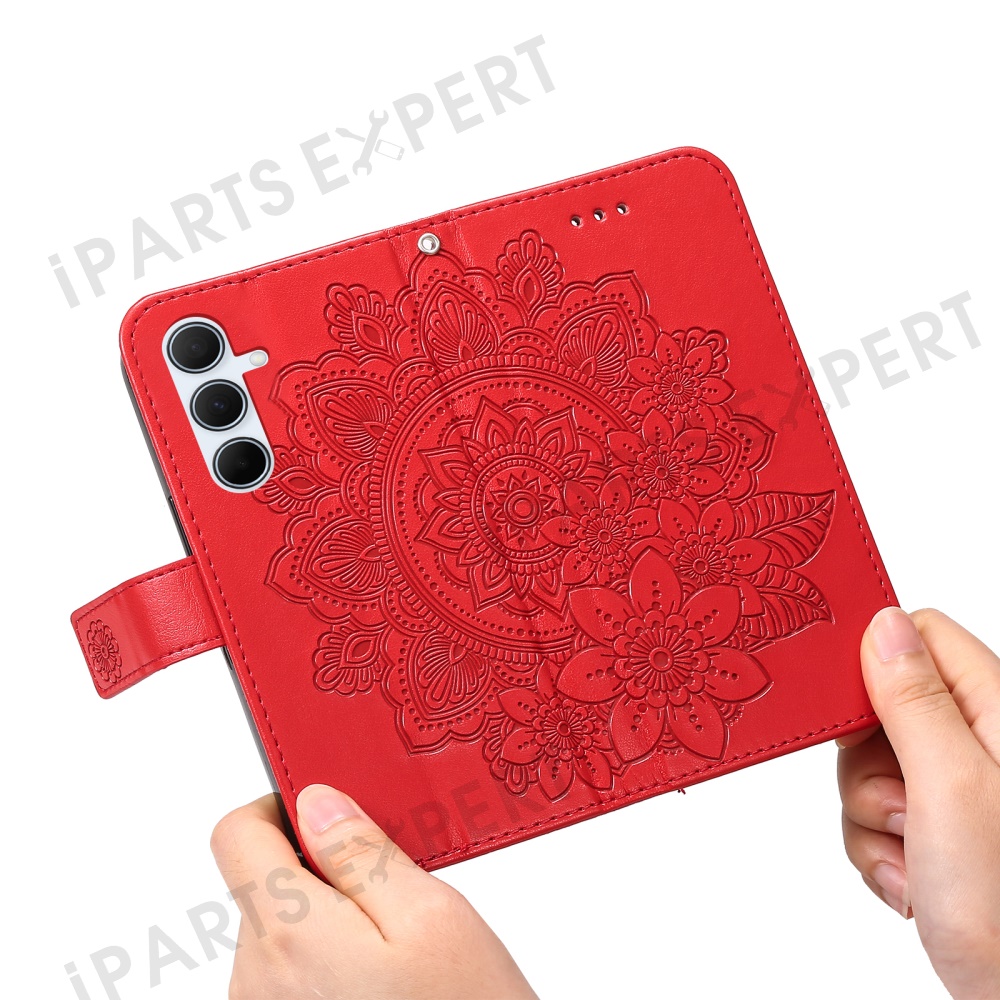 For Samsung Galaxy A36 5G Case Floral Pattern PU Leather Wallet Stand Phone Cover - Red