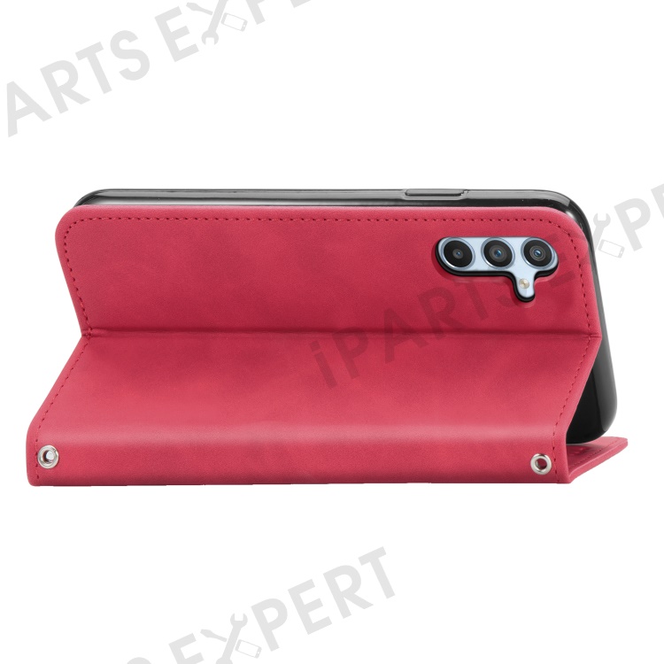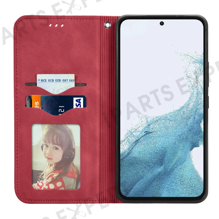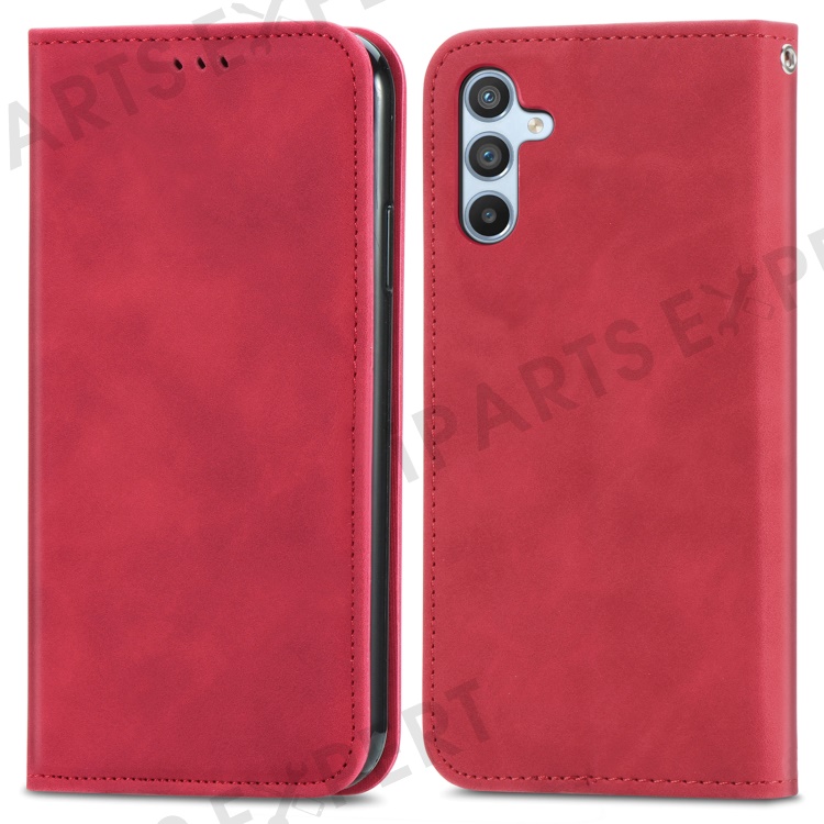 For Samsung Galaxy A36 5G Case Skin Touch Feeling Leather Card Holder Phone Cover Magnetic Absorption - Red
