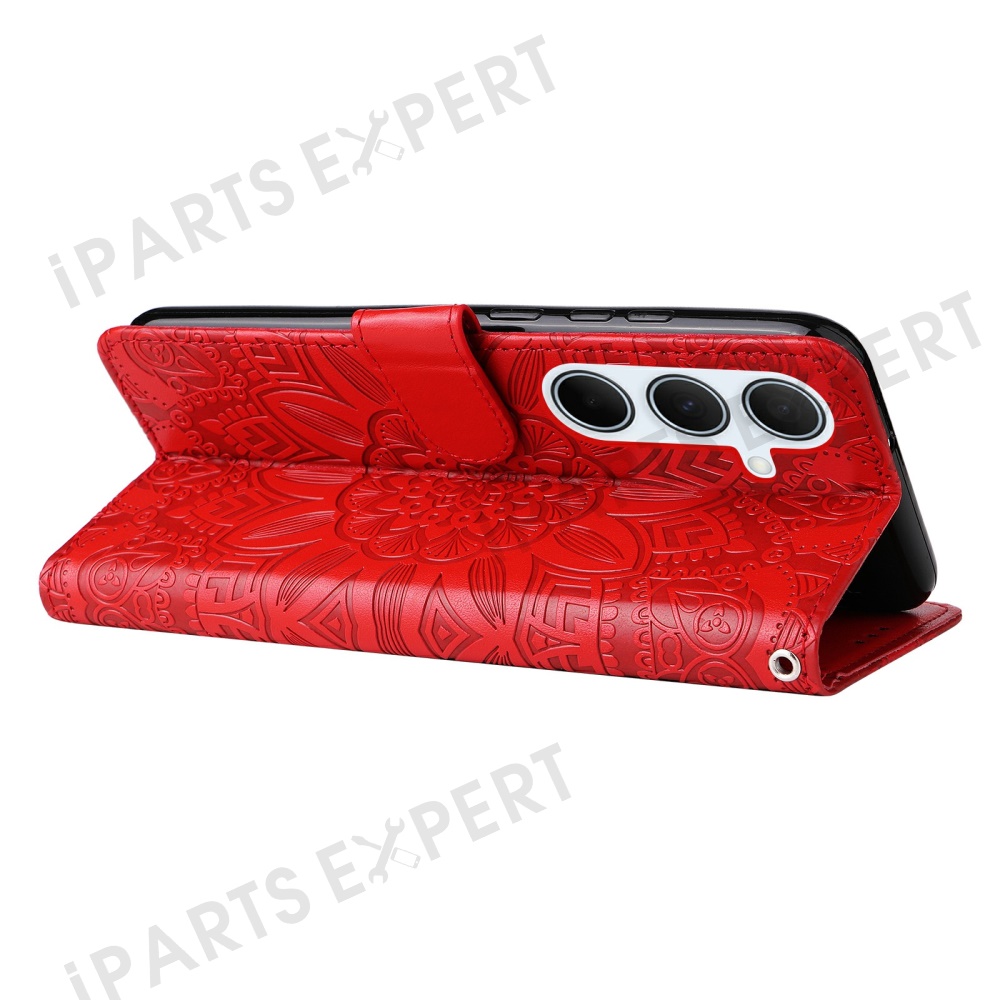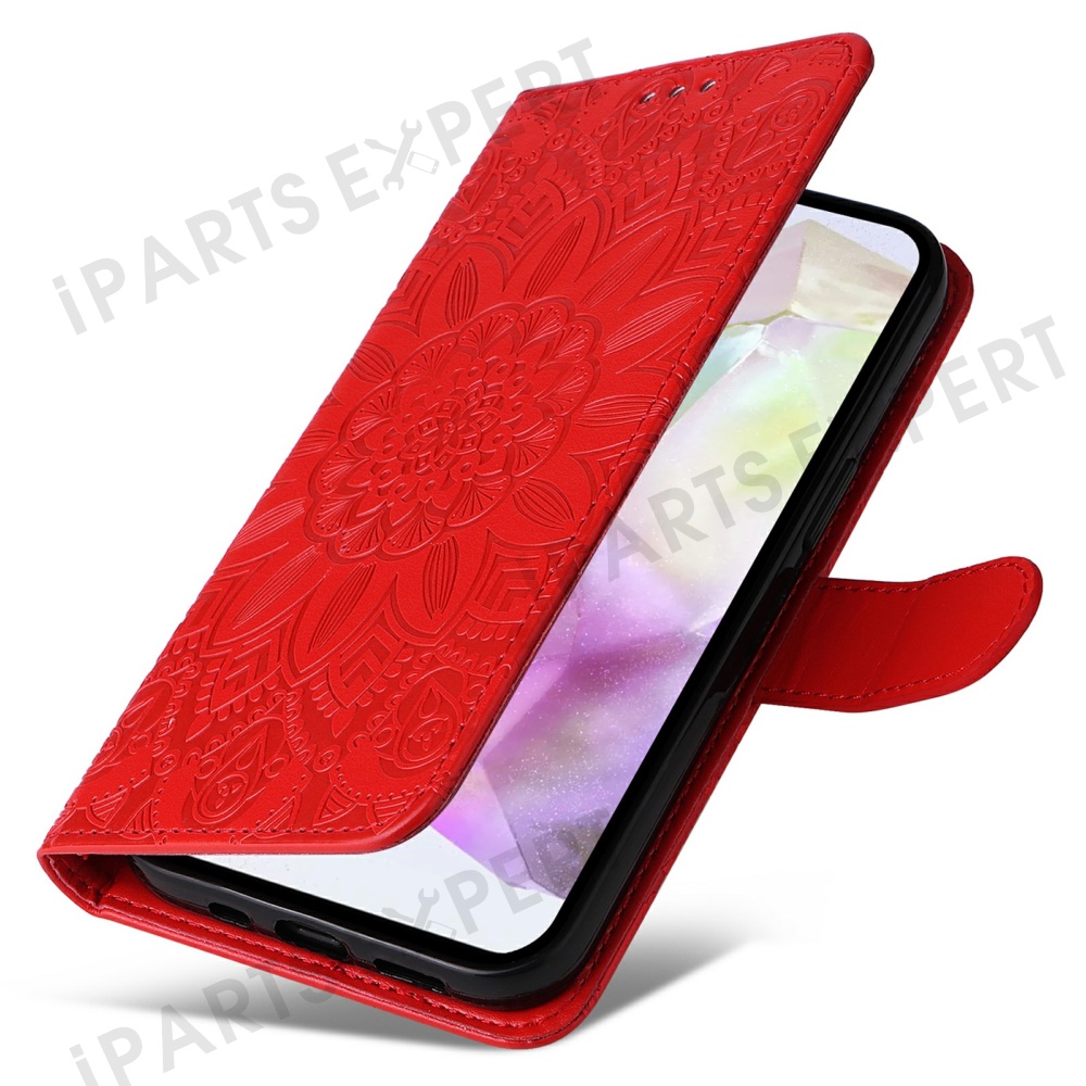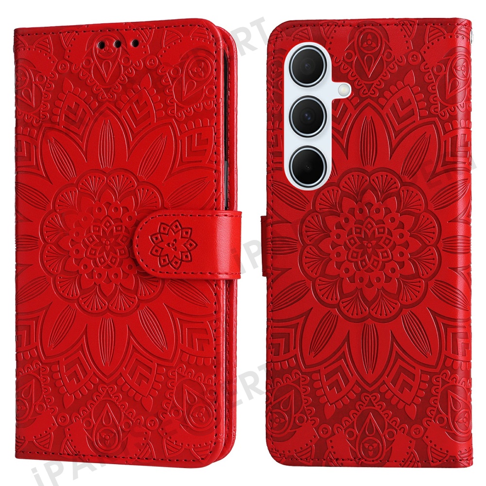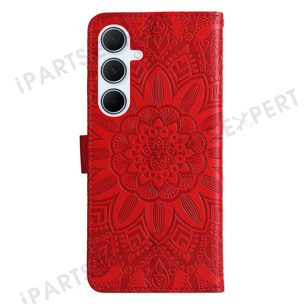 For Samsung Galaxy A36 5G Case Sunflower Imprint Leather Wallet Phone Cover - Red