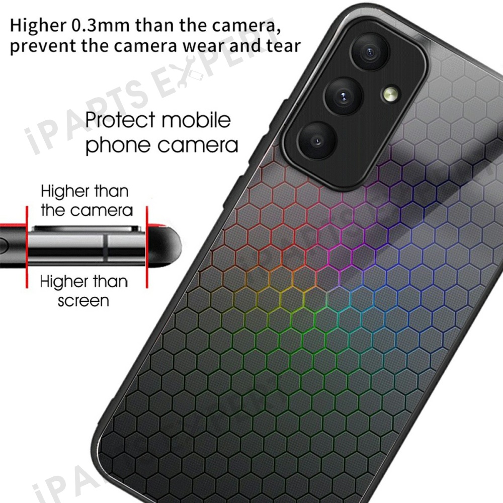 For Samsung Galaxy A36 5G Case Tempered Glass TPU Drop-Proof Phone Cover Pattern Printing - Colorful Honeycomb