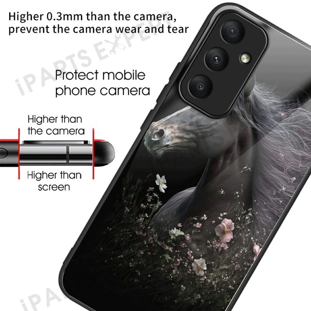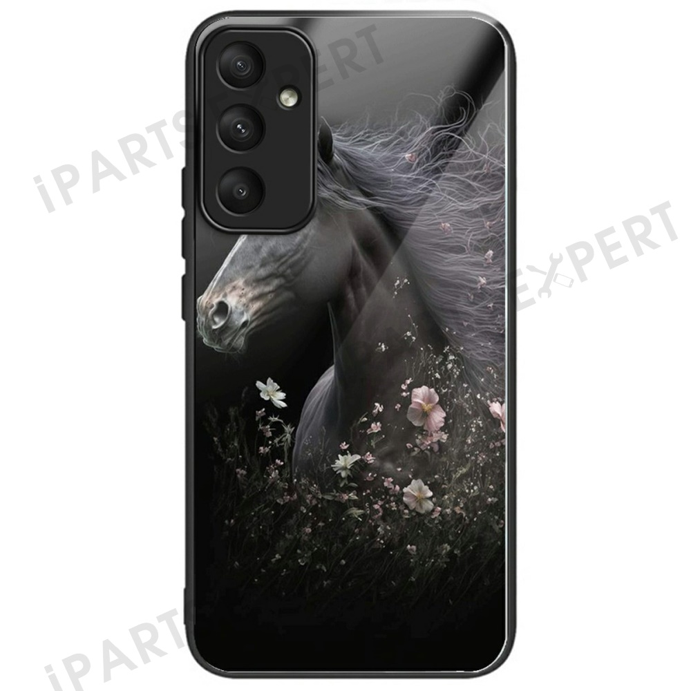 For Samsung Galaxy A36 5G Case Tempered Glass TPU Drop-Proof Phone Cover Pattern Printing - Horse and Flower
