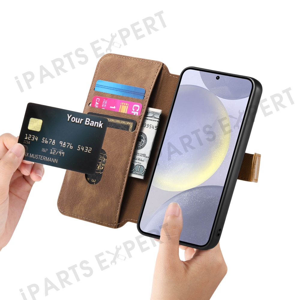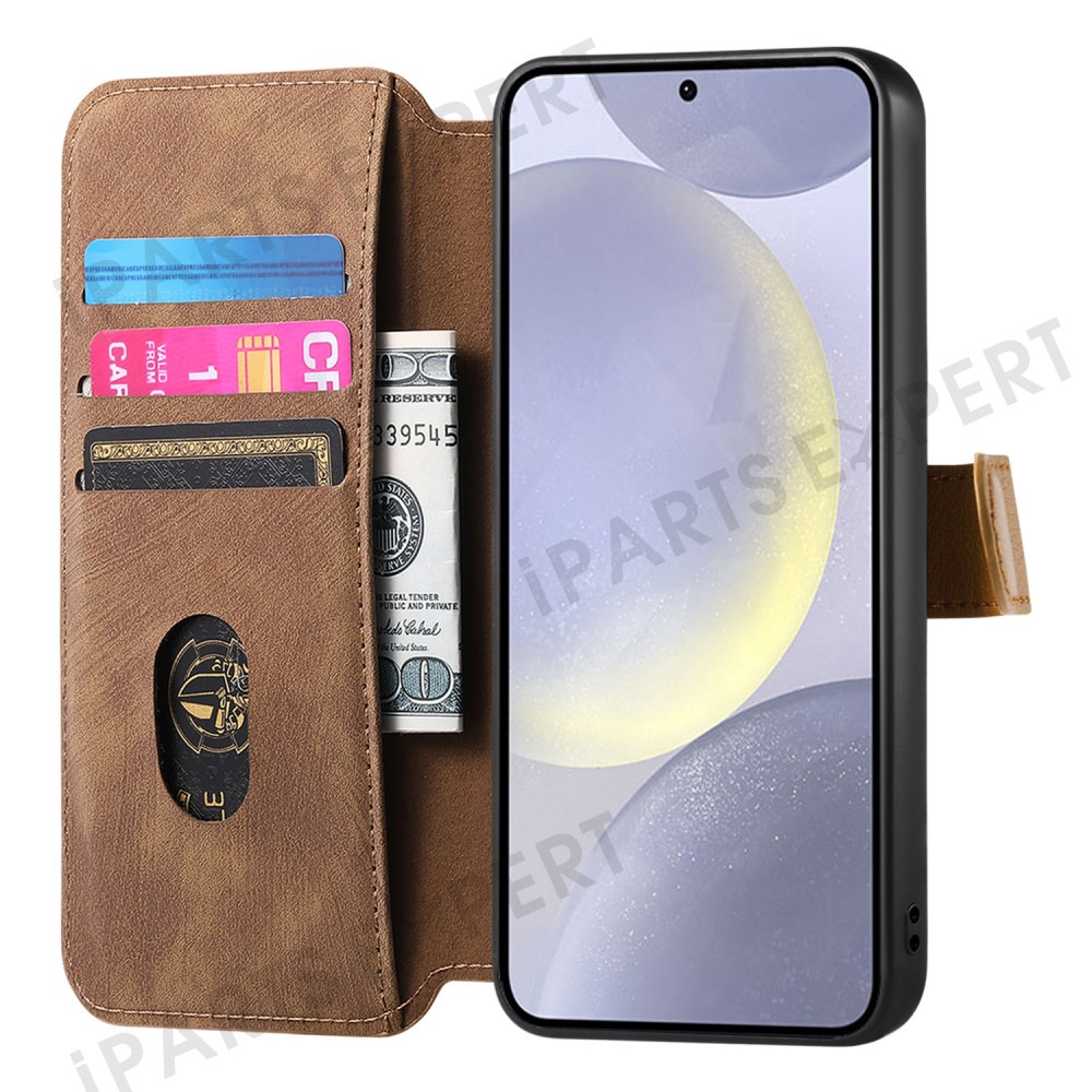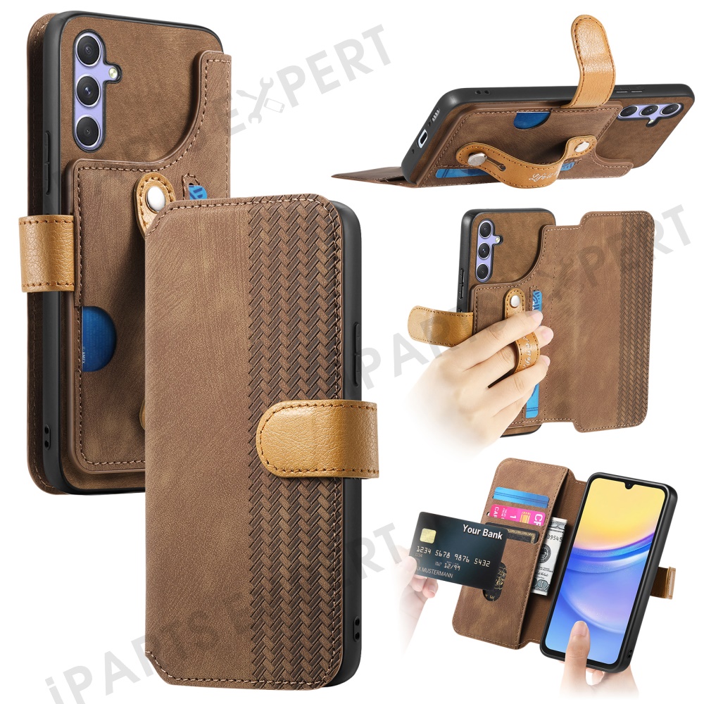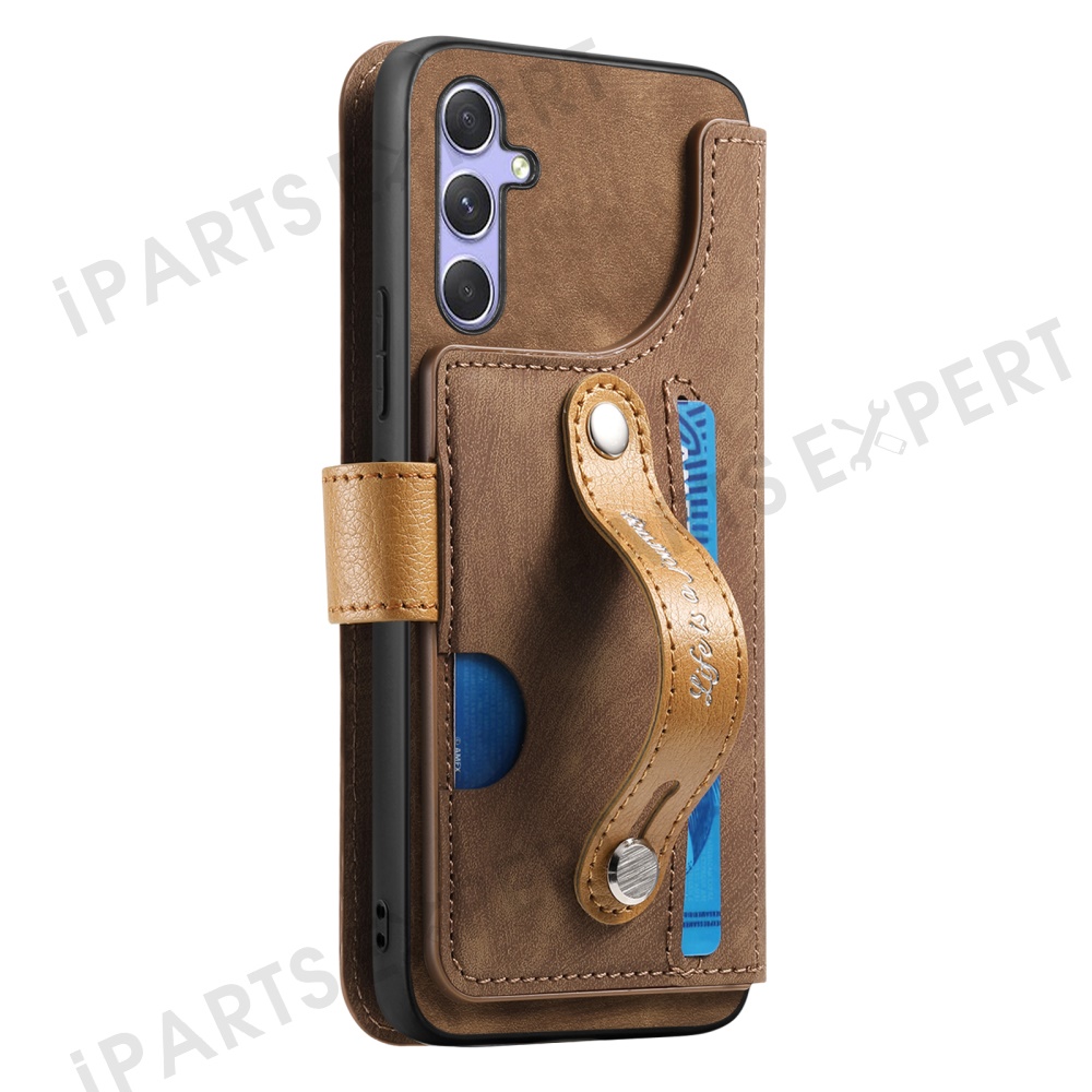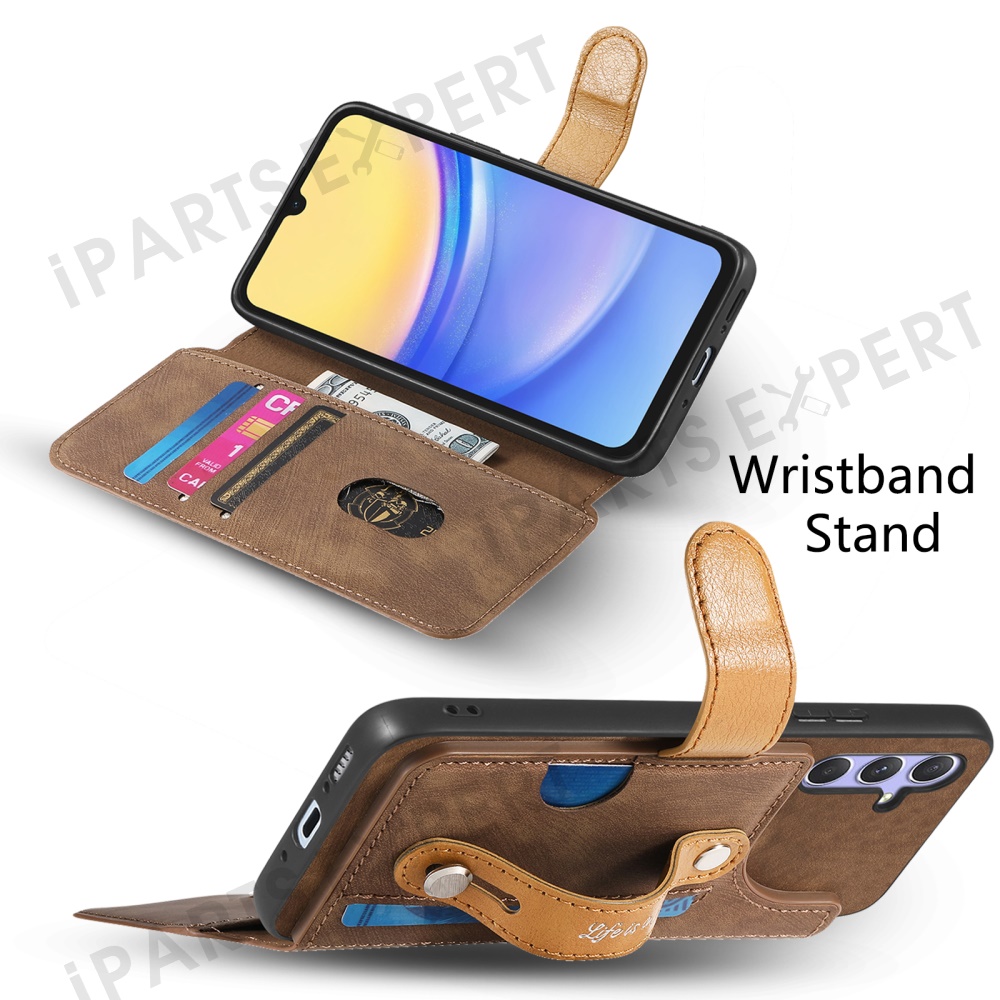 For Samsung Galaxy A36 5G Case Wallet Retro Leather Phone Cover with Wristband Kickstand - Brown